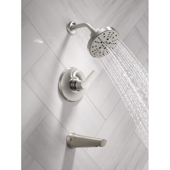 With a design inspired by the shape of sailboats, the Galeon™ Bath Collection brings a chiseled, contemporary look into the bath. Delta® showers with Monitor® pressure-balance valves are engineered to make sure you don’t experience a sudden and possibly unsafe change in water temperature as a result of running water elsewhere, such as using a dishwasher, flushing a toilet or running a washing machine. Our H2Okinetic® Showers look different because they are different. H2Okinetic showers are powered by an innovative technology that sculpts the water into a unique wave pattern, giving you the feeling of more water and water pressure. You can install with confidence, knowing that Delta showers are backed by our Lifetime Limited Warranty.