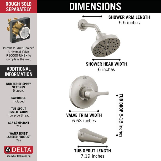 - Trim kit only, must order MultiChoice® Universal valve rough (R10000 series) separately to complete the unit