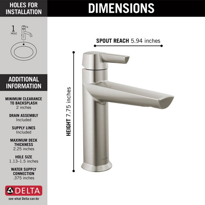 With a design inspired by the shape of sailboats, the Galeon™ Bath Collection brings a chiseled, contemporary look into the bath. Delta® faucets with DIAMOND Seal® Technology perform like new for life with a patented design that reduces leak points, is less hassle to install and lasts twice as long as the industry standard. Delta WaterSense labeled faucets use at least 20% less water than the industry standard — helping you save water without compromising performance. You can install with confidence, knowing that Delta faucets are backed by our Lifetime Limited Warranty.