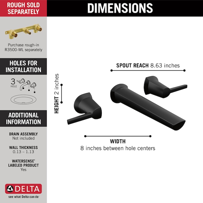 - Fits 3-hole 8-inch wall installations