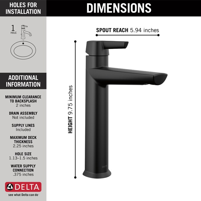 With a design inspired by the shape of sailboats, the Galeon™ Bath Collection brings a chiseled, contemporary look into the bath. Delta® faucets with DIAMOND Seal® Technology perform like new for life with a patented design that reduces leak points, is less hassle to install and lasts twice as long as the industry standard. Delta WaterSense labeled faucets use at least 20% less water than the industry standard — helping you save water without compromising performance. You can install with confidence, knowing that Delta faucets are backed by our Lifetime Limited Warranty.