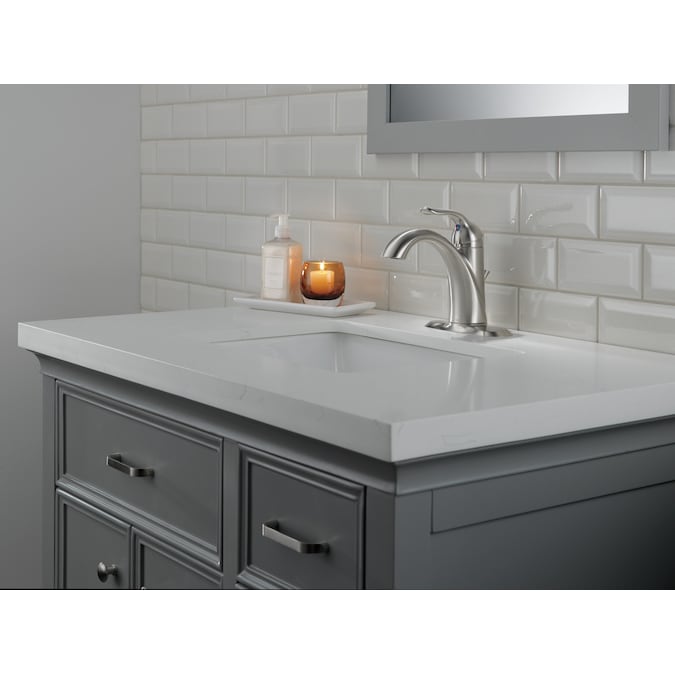 Delta Lahara Stainless 4-in centerset 1-Handle WaterSense Bathroom Sink Faucet with Drain and Deck Plate