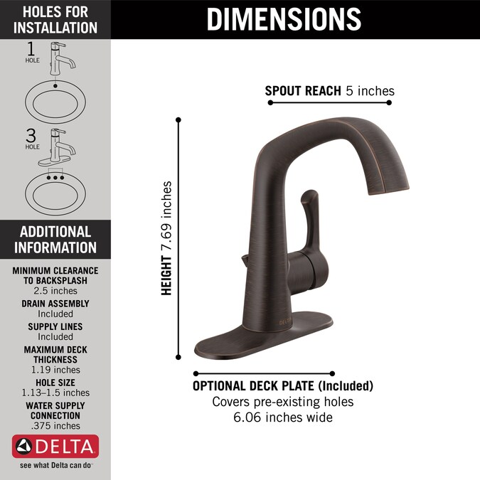 - 1-Hole Sink Compatible: Yes