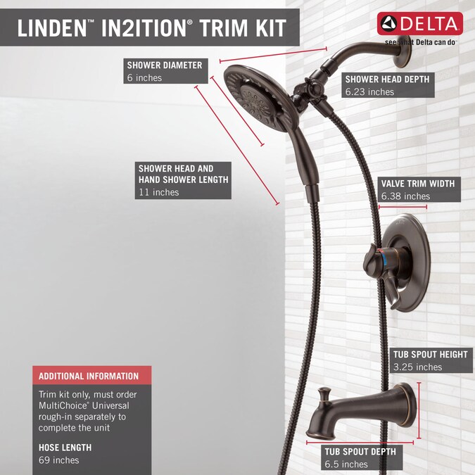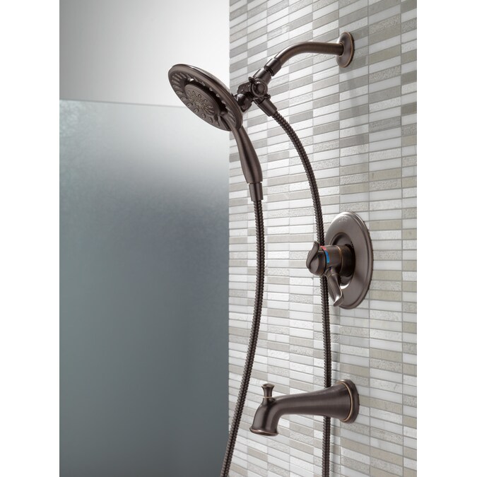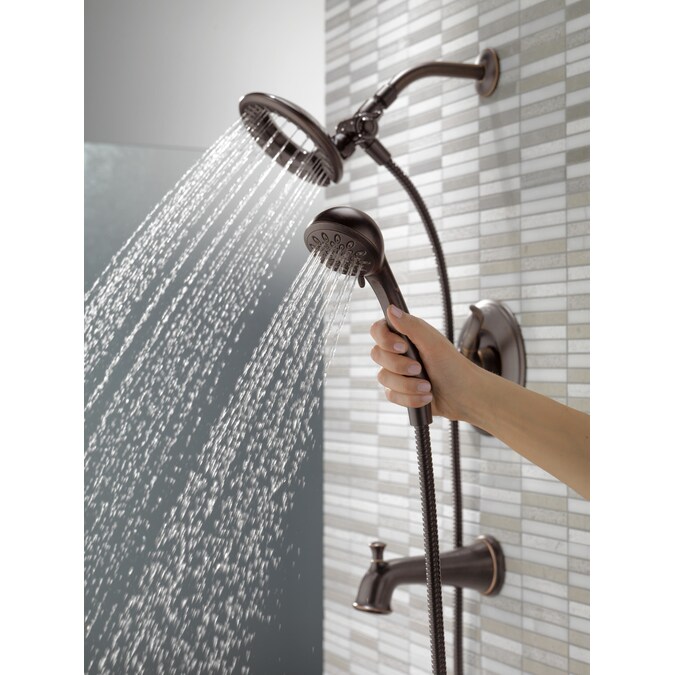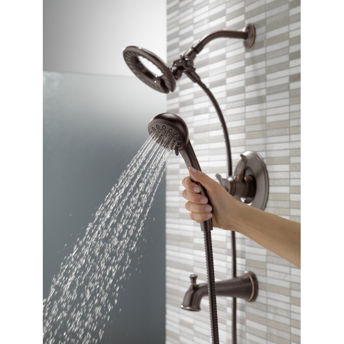 The Delta® In2ition® Two-in-One Shower features a detachable hand shower which can be used separately from or simultaneously with the shower head. This integrated dual-functionality gives you maximum flexibility without sacrificing warmth, as you can choose to have water streaming from the shower head only, the hand shower only or both the shower head and hand shower at once. With separate handles for volume and temperature control, this Delta tub/shower provides a more refined showering experience. Simply set the water at your preferred temperature and turn the shower on or off with the volume control handle – without interrupting your set temperature. Delta WaterSense labeled faucets, showers and toilets use at least 20% less water than the industry standard—saving you money without compromising performance.