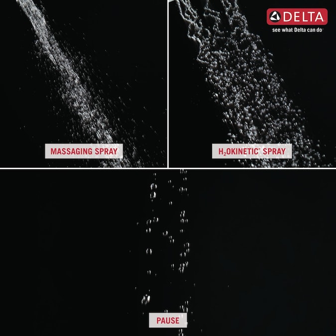 The confident slant of the Pivotal™ Bath Collection makes it a striking addition to a bathroom’s contemporary geometry for a look that makes a statement. Experience a better shower with the control and flexibility of a Delta® hand shower. Great for showering yourself or your loved ones and pets, as well as for keeping your shower and tub clean. Delta® H2Okinetic® Showers look different because they are different. Using advanced technology, H2Okinetic showers sculpt water into a unique pattern, giving you 3X the coverage of a standard shower head. The end result is a shower that provides more coverage, more warmth and more intensity for a truly drenching shower experience. So go ahead and indulge, because now you can enjoy the feeling of more water without using more water. Delta® Lumicoat™ Finishes easily wipe clean without the need for cleaners or chemicals and are guaranteed to resist mineral buildup and hard water stains. The ultra-sleek surface repels liquids, resisting water spots and staying cleaner longer, so your faucet stays beautiful. While other products may gather unsightly mineral build-up over time, Delta soft rubber Touch-Clean® spray holes allow any mineral residue to simply be wiped away for an instantly refreshed look – with no need for soaking or the aid of chemical cleaners. The pause setting gives you ample space for shaving, lathering and other shower tasks, then easily restarts the water with the temperature where you left off. This spray setting helps you conserve water, so you can worry less about depleting your supply of hot water – and you help the environment too. Delta WaterSense labeled faucets, showers and toilets use at least 20% less water than the industry standard—saving you money without compromising performance.