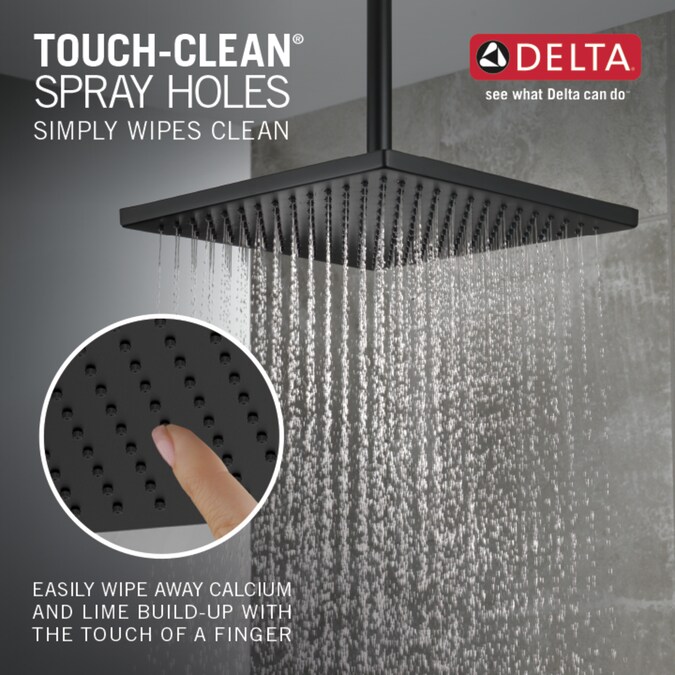 - Soft, rubber Touch-Clean spray holes allow you to easily wipe away calcium and lime build-up from the spray face of your shower head and hand shower with the touch of a finger