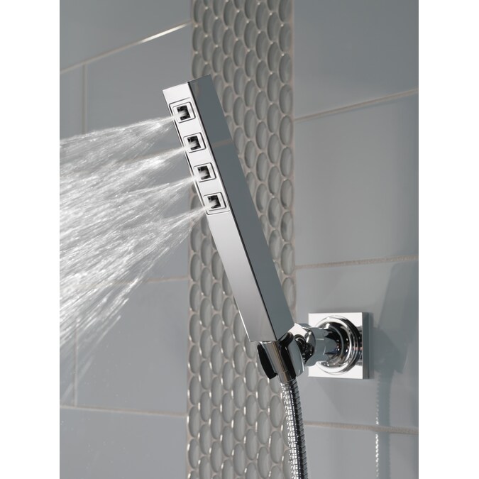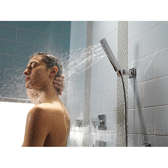 Experience a better shower with the control and flexibility of a Delta® hand shower. Great for showering yourself or your loved ones and pets, as well as for keeping your shower and tub clean. Delta® H2Okinetic® Showers look different because they are different. Using advanced technology, H2Okinetic showers sculpt water into a unique wave pattern, giving you 3X the coverage of a standard shower head. The end result is a shower that provides more coverage, more warmth and more intensity for a truly drenching shower experience. So go ahead and indulge, because now you can enjoy the feeling of more water without using more water. While other products may gather unsightly mineral build-up over time, Delta soft rubber Touch-Clean® spray holes allow any mineral residue to simply be wiped away for an instantly refreshed look – with no need for soaking or the aid of chemical cleaners. The pause setting gives you ample space for shaving, lathering and other shower tasks, then easily restarts the water with the temperature where you left off. This spray setting helps you conserve water, so you can worry less about depleting your supply of hot water – and you help the environment too. Delta WaterSense labeled faucets, showers and toilets use at least 20% less water than the industry standard—saving you money without compromising performance. You can install with confidence knowing that Delta backs this adjustable slide bar with a lifetime limited warranty.Coverage measured in accordance with EPA WaterSense® Specification for shower heads, March 4, 2010.