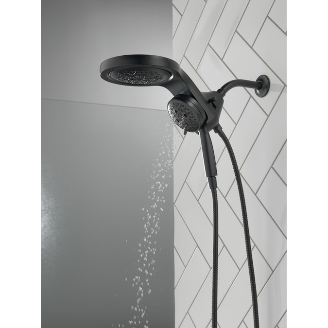 A Delta® HydroRain® H2Okinetic® Two-in-One Shower Head with hand shower completely transforms your shower with dual shower head functionality, featuring an integrated raincan and hand shower. The power of the raincan and hand shower together creates an immersive, spa-like showering experience that you can install in minutes to a standard shower arm, without altering the plumbing behind the wall. The integrated hand shower stays put every time you dock thanks to MagnaTite® Docking and provides maximum flexibility and control when you need it, while the H2Okinetic PowerDrench® Spray feels like more water, warmth and intensity without using more water. Don’t just take a shower, transform it, with a Delta HydroRain Shower Head. While other products may gather unsightly mineral build-up over time, Delta soft rubber Touch-Clean® spray holes allow any mineral residue to simply be wiped away for an instantly refreshed look – with no need for soaking or the aid of chemical cleaners. The pause setting gives you ample space for shaving, lathering and other shower tasks, without worrying about overspray or water waste. This spray setting helps you conserve water, so you can worry less about depleting your supply of hot water – and you help the environment too. Delta WaterSense labeled faucets, showers and toilets use at least 20% less water than the industry standard—saving you money without compromising performance.