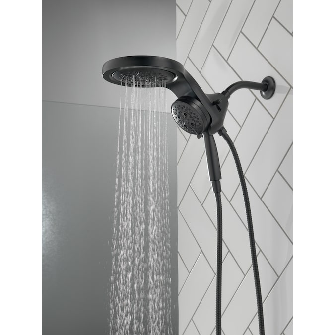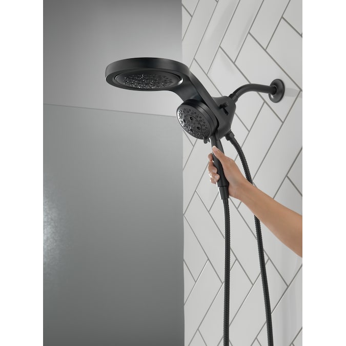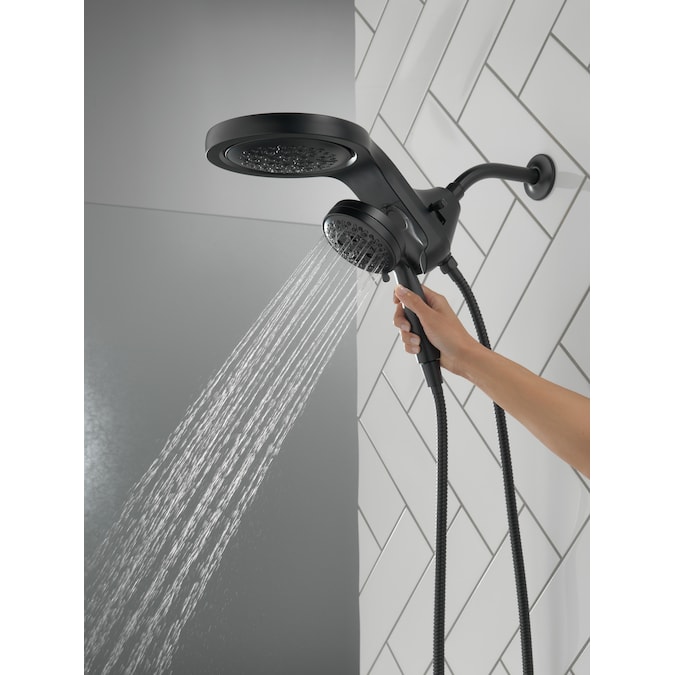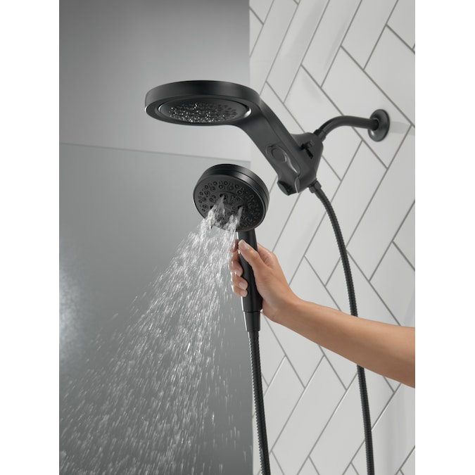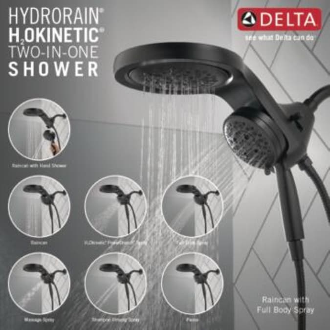 A Delta® HydroRain® H2Okinetic® Two-in-One Shower Head with hand shower completely transforms your shower with dual shower head functionality, featuring an integrated raincan and hand shower. The power of the raincan and hand shower together creates an immersive, spa-like showering experience that you can install in minutes to a standard shower arm, without altering the plumbing behind the wall. The integrated hand shower stays put every time you dock thanks to MagnaTite® Docking and provides maximum flexibility and control when you need it, while the H2Okinetic PowerDrench® Spray feels like more water, warmth and intensity without using more water. Don’t just take a shower, transform it, with a Delta HydroRain Shower Head. While other products may gather unsightly mineral build-up over time, Delta soft rubber Touch-Clean® spray holes allow any mineral residue to simply be wiped away for an instantly refreshed look – with no need for soaking or the aid of chemical cleaners. The pause setting gives you ample space for shaving, lathering and other shower tasks, without worrying about overspray or water waste. This spray setting helps you conserve water, so you can worry less about depleting your supply of hot water – and you help the environment too.