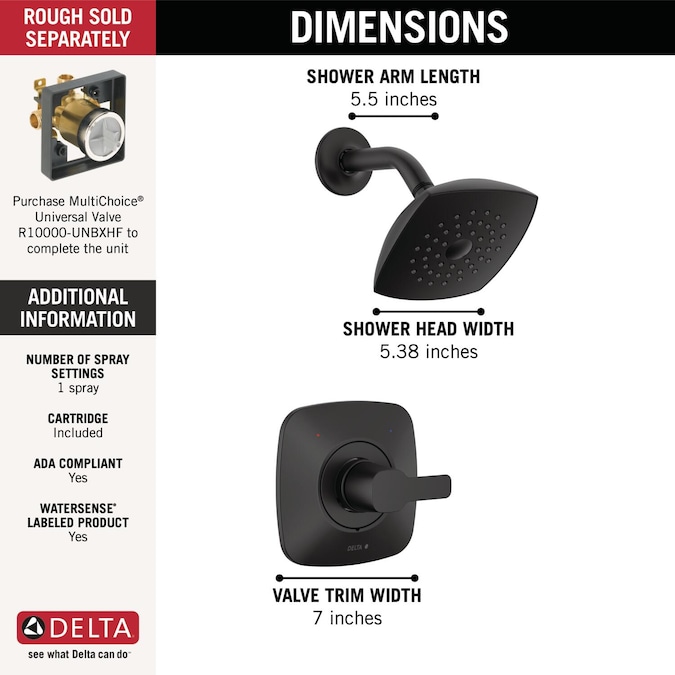 - Trim kit only, must order MultiChoice® Universal valve rough (R10000 series) separately to complete the unit