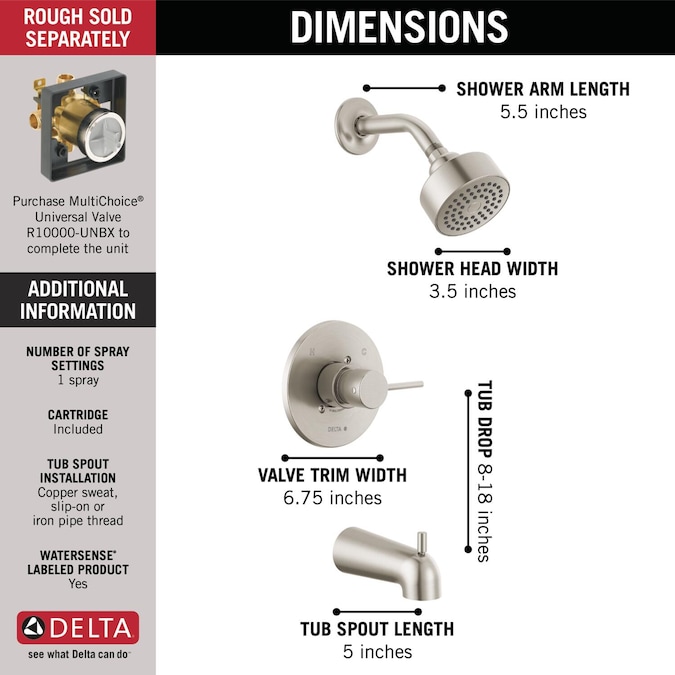 • Trim kit only, must order MultiChoice® Universal valve rough (R10000 series) separately to complete the unit