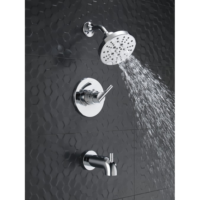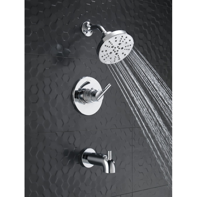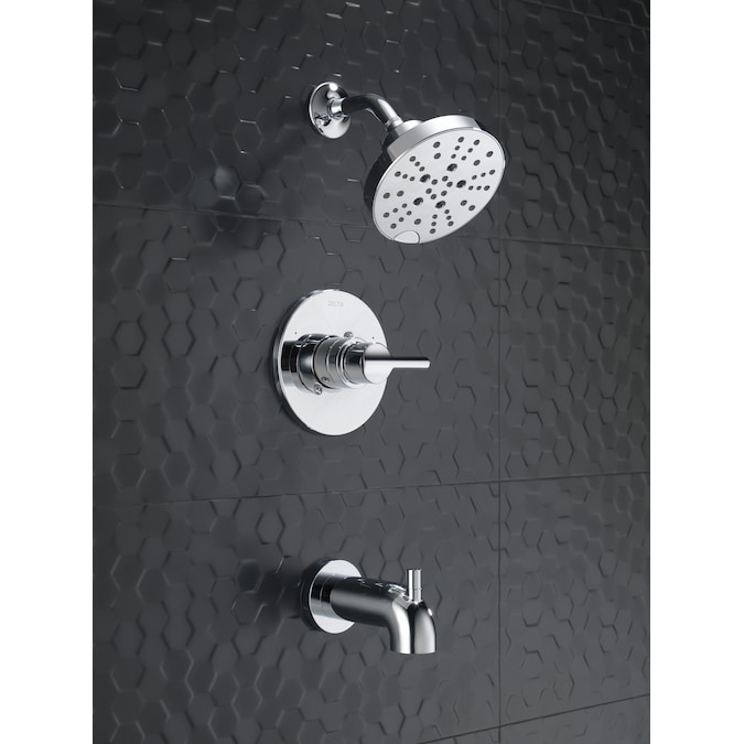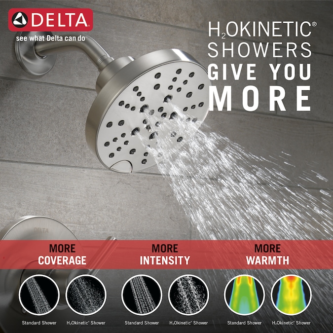 The smooth lines and elegant form of the Delta® Nicoli™ bath collection add a modern touch to your bath. Delta H2Okinetic® Showers look different because they are different. Using advanced technology, H2Okinetic showers sculpt water into a unique wave pattern, giving you 3X the coverage of a standard shower head. The end result is a shower that provides more coverage, more warmth and more intensity for a truly drenching shower experience. While other products may gather unsightly mineral build-up over time, Delta soft rubber Touch-Clean® spray holes allow any mineral residue to simply be wiped away for an instantly refreshed look – with no need for soaking or the aid of chemical cleaners. The pause setting gives you ample space for shaving, lathering and other shower tasks, then easily restarts the water with the temperature where you left off. This spray setting helps you conserve water, so you can worry less about depleting your supply of hot water – and you help the environment too. Delta® pressure-balance valves use Monitor® Technology to protect you and your family from sudden temperature changes. Delta WaterSense labeled faucets, showers and toilets use at least 20% less water than the industry standard—saving you money without compromising performance.