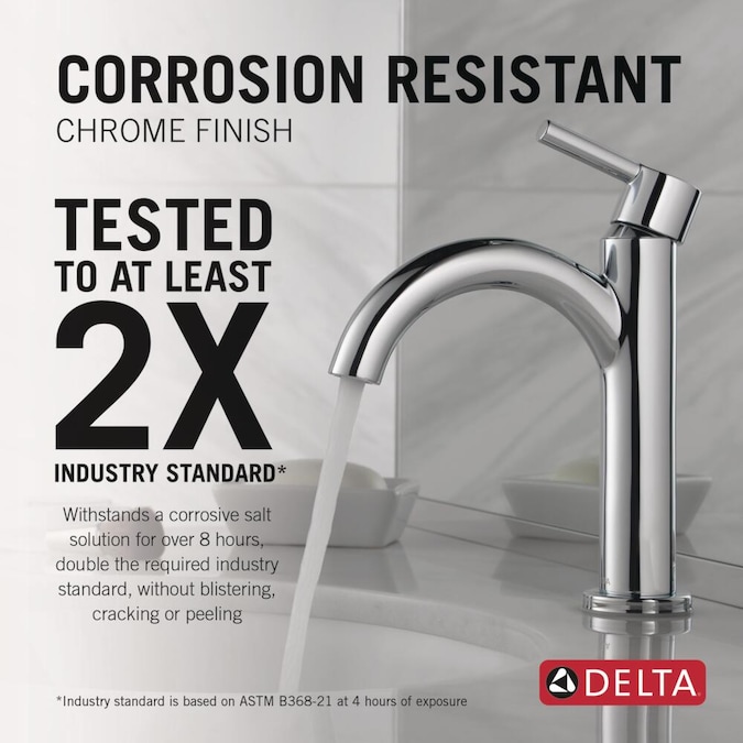 • CORROSION-RESISTANT FINISH: Delta Chrome bathroom faucet finish is intentionally engineered for durability and tested for corrosion resistance to at least 2 times industry standards