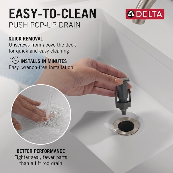 - EASY-TO-CLEAN DRAIN: Push pop-up drain unscrews from above the deck for quick removal and easy cleaning of hair and other bathroom sink debris