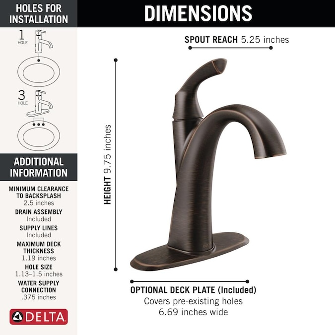 - LIFETIME LIMITED WARRANTY: You can install with confidence, knowing Delta bathroom faucets are backed by our Lifetime Limited Warranty and repair parts