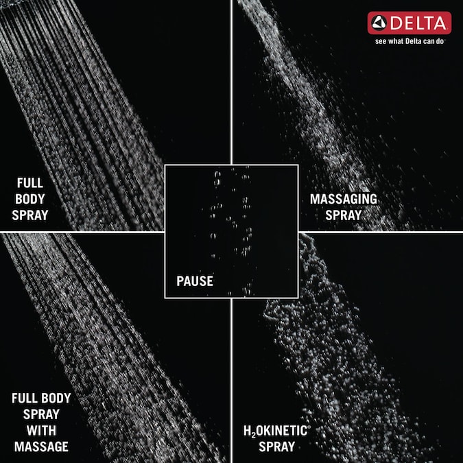 - Spray settings include: H2Okinetic® spray, Full Body spray, Full spray with Massage, Massaging spray, and Pause