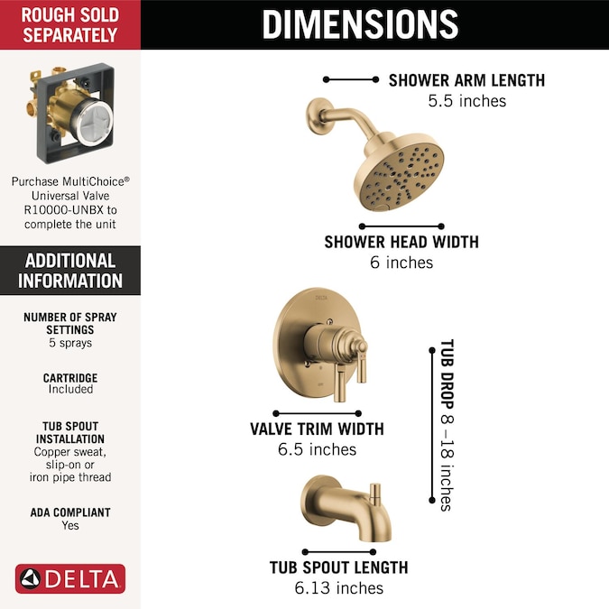 - Trim kit only, must order MultiChoice® Universal valve rough (R10000 Series) separately to complete the unit