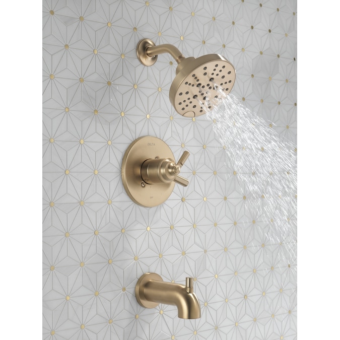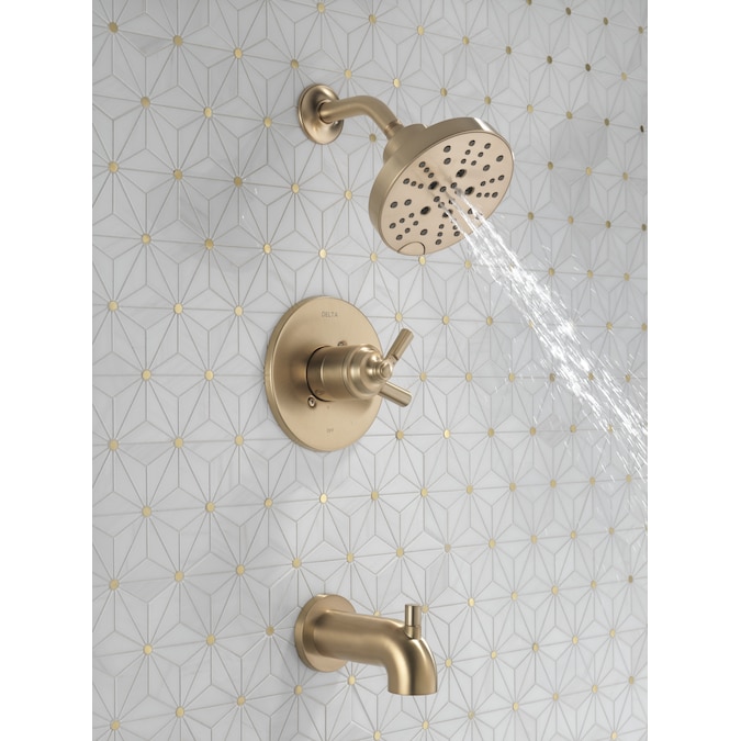 The Saylor™ Bath Collection is an intriguing blend of traditional and contemporary design elements with strong, geometric forms and hints of industrial style in the handles. With separate handles for volume and temperature control, this Delta tub/shower provides a more refined showering experience. Simply set the water at your preferred temperature and turn the shower on or off with the volume control handle—without interrupting your set temperature. Delta® showers with Monitor® pressure-balance valves are engineered to make sure you don’t experience a sudden and possibly unsafe change in water temperature as a result of running water elsewhere, such as using a dishwasher, flushing a toilet or running a washing machine. While other products may gather unsightly mineral buildup over time, Delta soft rubber Touch-Clean® spray holes allow any mineral residue to simply be wiped away for an instantly refreshed look — with no need for soaking or the aid of chemical cleaners. The pause setting gives you ample space for shaving, lathering and other shower tasks, then easily restarts the water with the temperature where you left off. This spray setting helps you conserve water, so you can worry less about depleting your supply of hot water — and you help the environment too. Delta WaterSense® labeled faucets, showers and toilets use at least 20% less water than the industry standard — helping you save water without compromising performance. You can install with confidence, knowing Delta® products are backed by our Lifetime Limited Warranty.
