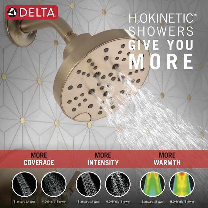- H2Okinetic® Technology showers feel like more water and more pressure, with more coverage