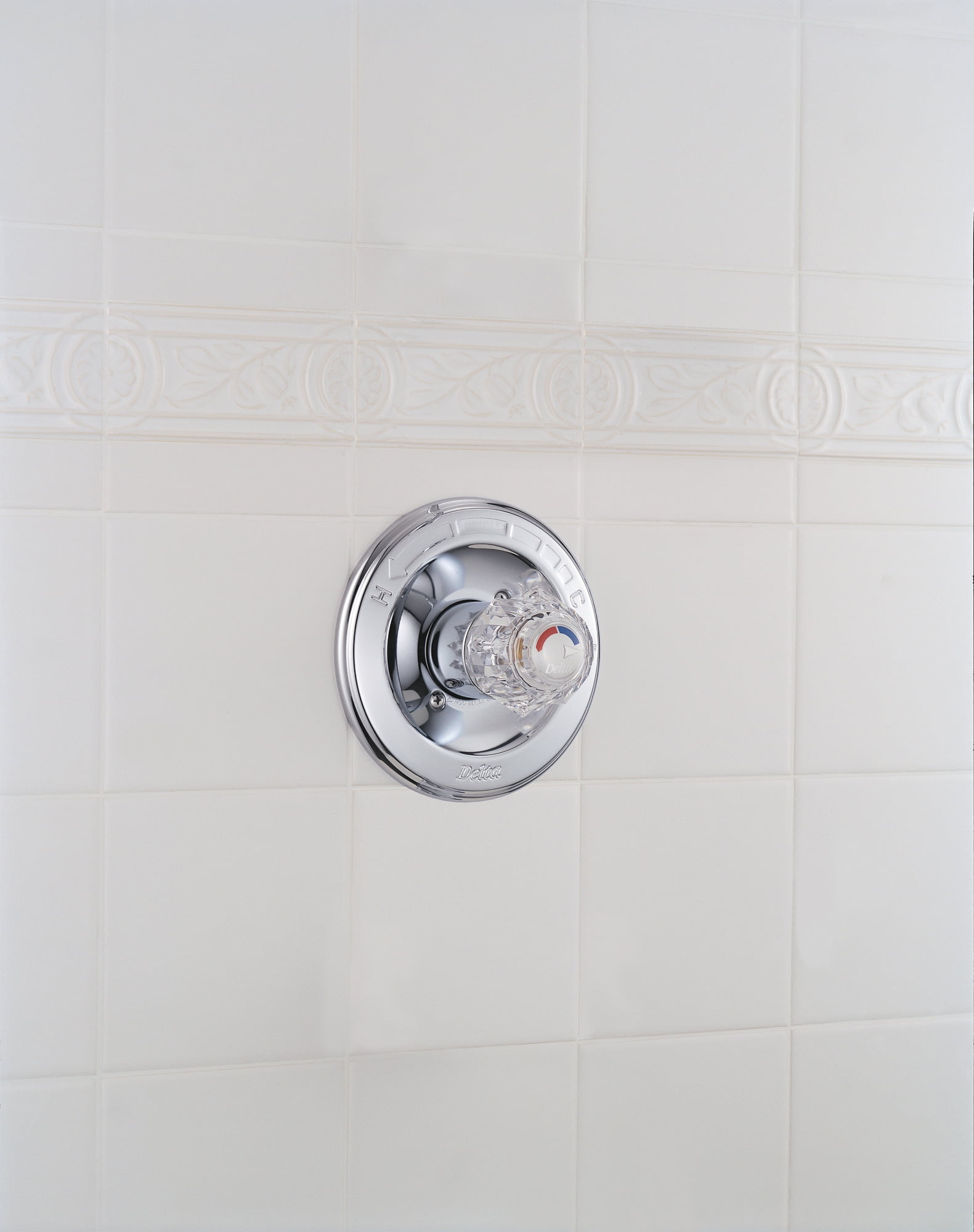Delta Silver Manual 2-Modes 1-Handle Shower Valve Trim Trim kit only; must order MultiChoice Universal rough-in separately to complete the unit Monitor pressure balance valve keeps water temperature within a safe +/- 3 degrees F (+/- 1.6 degrees C) Single function operation for straightforward use Single lever handle for ease of temperature control Meets standards set by the Americans with Disabilities Act (ADA)