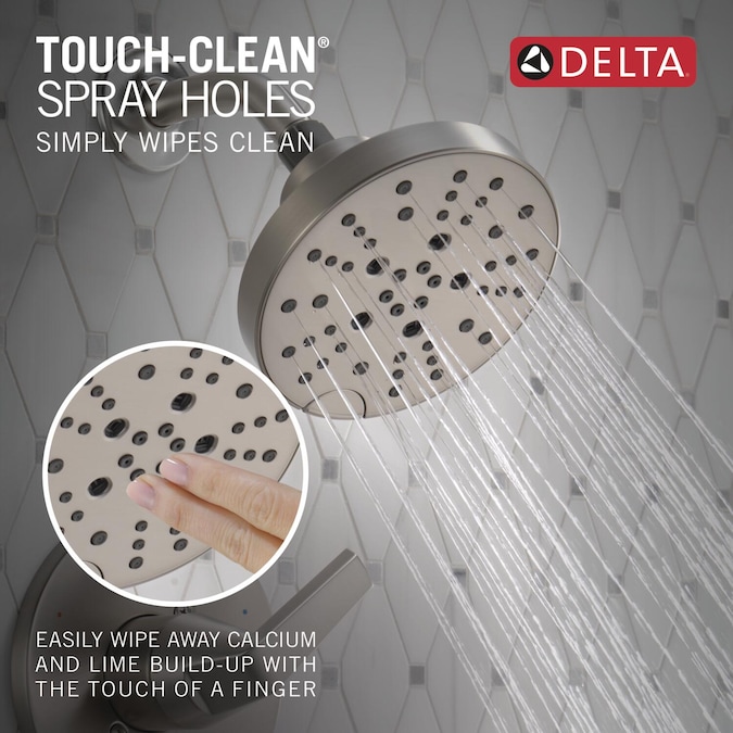 - Soft, rubber Touch-Clean® spray holes allow you to easily wipe away calcium and lime buildup from the spray face of your shower head and hand shower with the touch of a finger