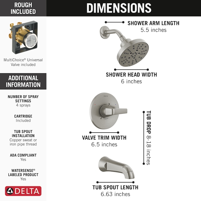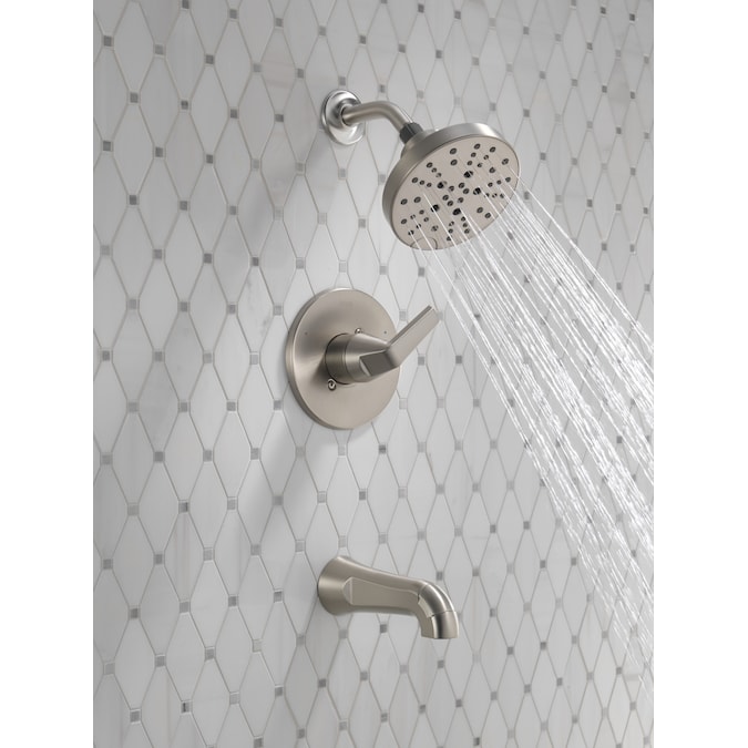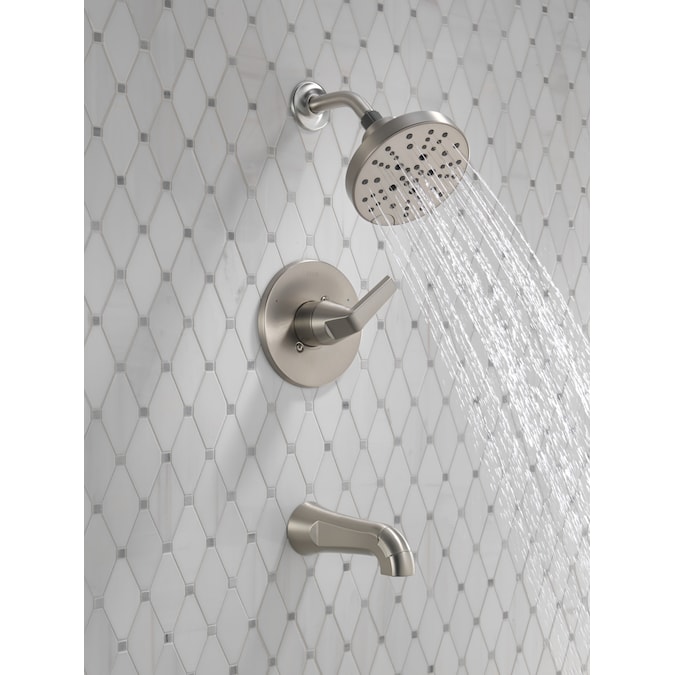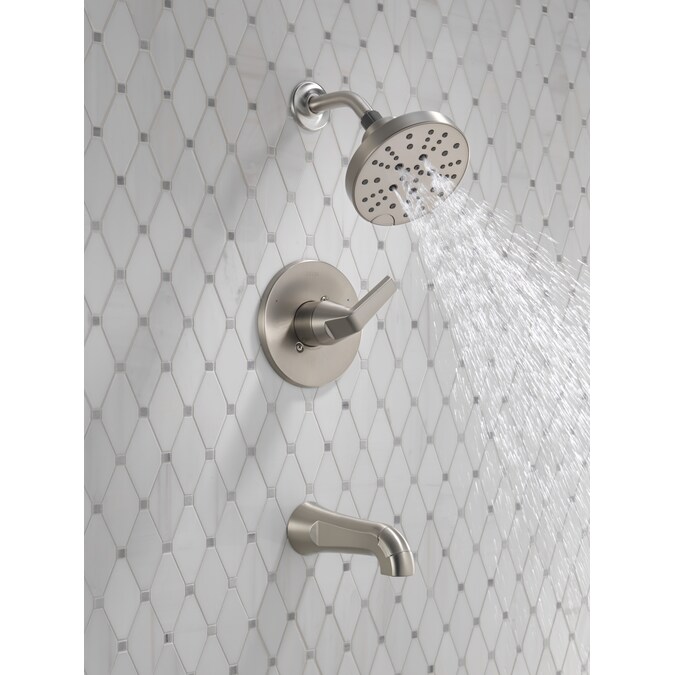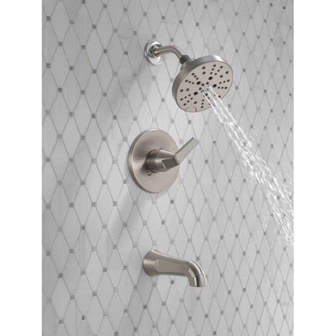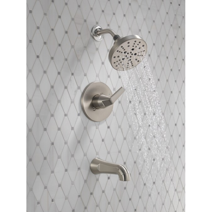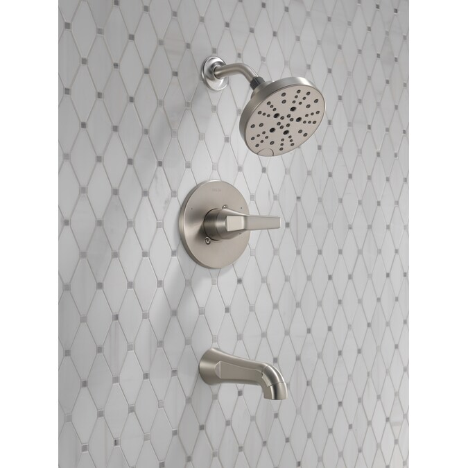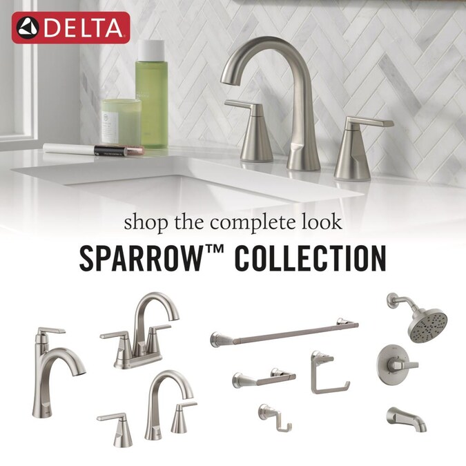 Bring clean lines and subtle details to your bath with the Sparrow™ Bath Collection. While other products may gather unsightly mineral buildup over time, soft rubber Touch-Clean® spray holes allow any mineral residue to simply be wiped away for an instantly refreshed look — with no need for soaking or the aid of chemical cleaners. The pause spray setting gives you ample space for shaving, lathering and other shower tasks, then easily restarts the water with the temperature where you left off. This spray setting helps you conserve water, so you can worry less about depleting your supply of hot water — and you help the environment too. WaterSense® labeled faucets, showers and toilets use at least 20% less water than the industry standard — helping you save water without compromising performance. You can install with confidence, knowing Delta® products are backed by our Lifetime Limited Warranty.