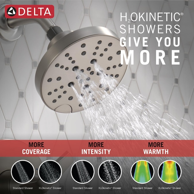 - H2Okinetic® Shower technology sculpts water into a unique pattern, forming a powerful drench spray