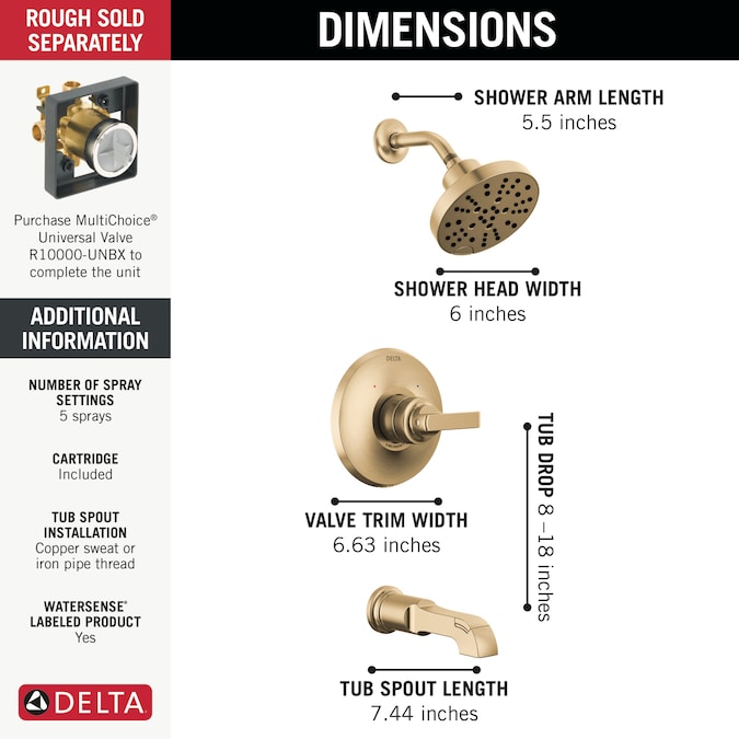• Trim kit only, must order MultiChoice® Universal valve rough (R10000) separately to complete the unit
