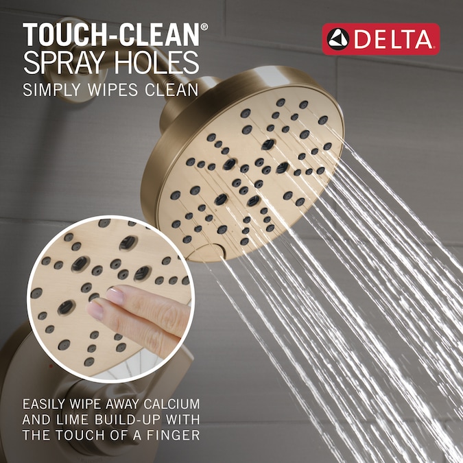 • Soft, rubber Touch-Clean® spray holes allow you to easily wipe away calcium and lime buildup from the spray face of your shower head and hand shower with the touch of a finger
