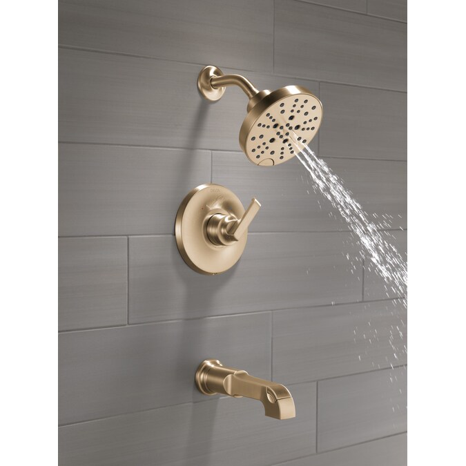Delta Tetra Lumicoat Champagne Bronze 1-handle Multi-function Round Bathtub and Shower Faucet