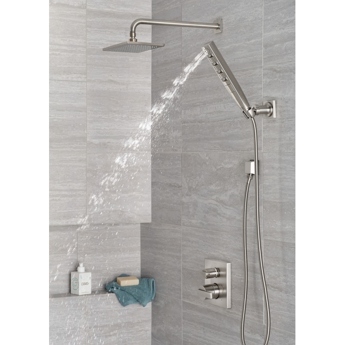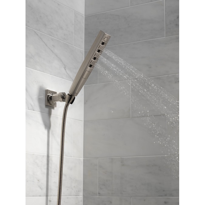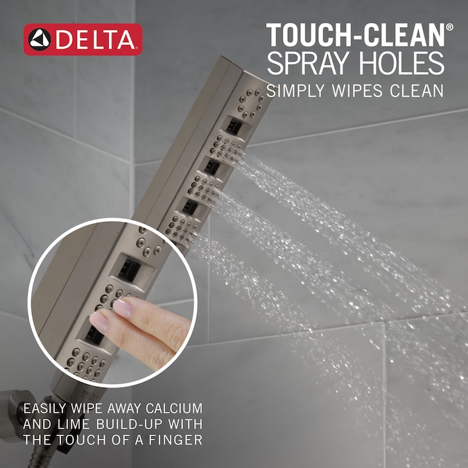 Experience a better shower with the control and flexibility of a Delta® hand shower. Great for showering yourself or your loved ones and pets, as well as for keeping your shower and tub clean. Delta® H2Okinetic® Showers look different because they are different. Using advanced technology, H2Okinetic showers sculpt water into a unique wave pattern, giving you 3X the coverage of a standard shower head and the feeling of more water without using more water. The pause setting gives you ample space for shaving, lathering and other shower tasks, then easily restarts the water with the temperature where you left off. This spray setting helps you conserve water, so you can worry less about depleting your supply of hot water – and you help the environment too. Delta® Lumicoat™ Finishes easily wipe clean without the need for cleaners or chemicals and are guaranteed to resist mineral buildup and hard water stains. The ultra-sleek surface repels liquids, resisting water spots and staying cleaner longer, so your faucet’s most commonly touched areas stay beautiful. While other products may gather unsightly mineral build-up over time, Delta soft rubber Touch-Clean® spray holes allow any mineral residue to simply be wiped away for an instantly refreshed look – with no need for soaking or the aid of chemical cleaners. You can install with confidence, knowing that Delta faucets are backed by our Lifetime Limited Warranty.