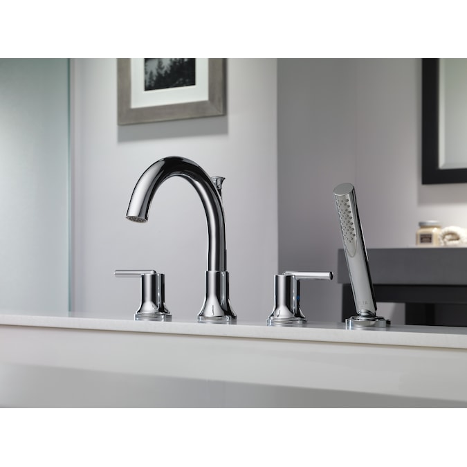 Complete your bath with a beautifully designed Delta roman tub faucet, meticulously crafted to turn heads and enhance your experience. The included hand shower makes this a versatile addition to your bath, perfect for rinsing off, washing loved ones and pets or keeping your tub clean. Chrome has rapidly become one of the most popular finishes across décor styles in the bath thanks to its stunning gloss and innate versatility. Paired with crisp lines and bright whites, it creates a bold, modern contrast, but it works equally well with vintage styles and traditional spaces to convey a hint of nostalgia. You can install with confidence, knowing that Delta faucets are backed by our Lifetime Limited Warranty.