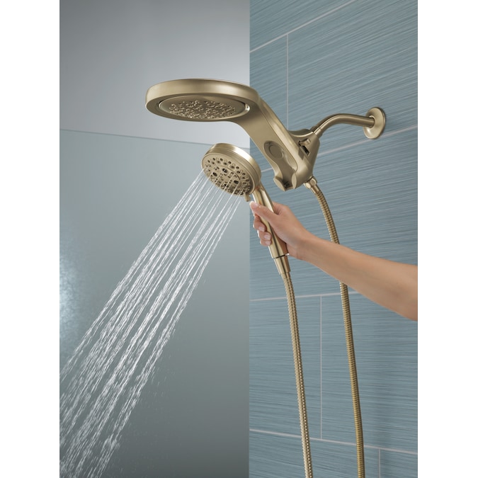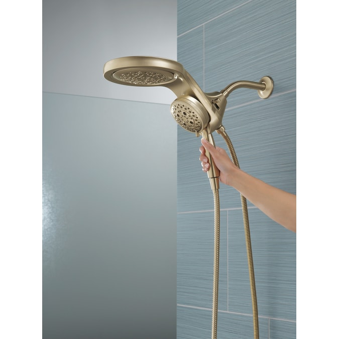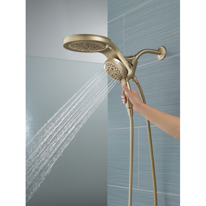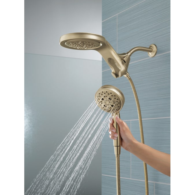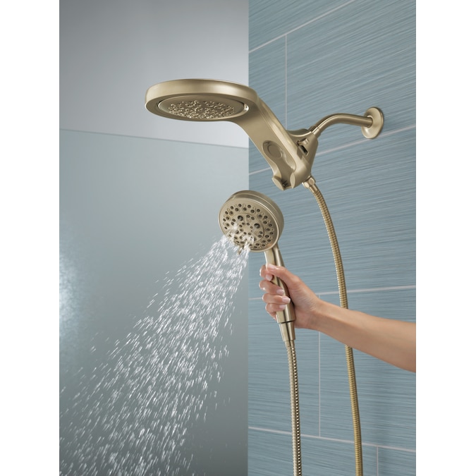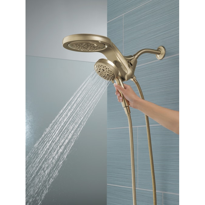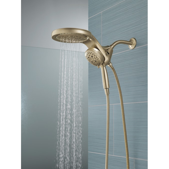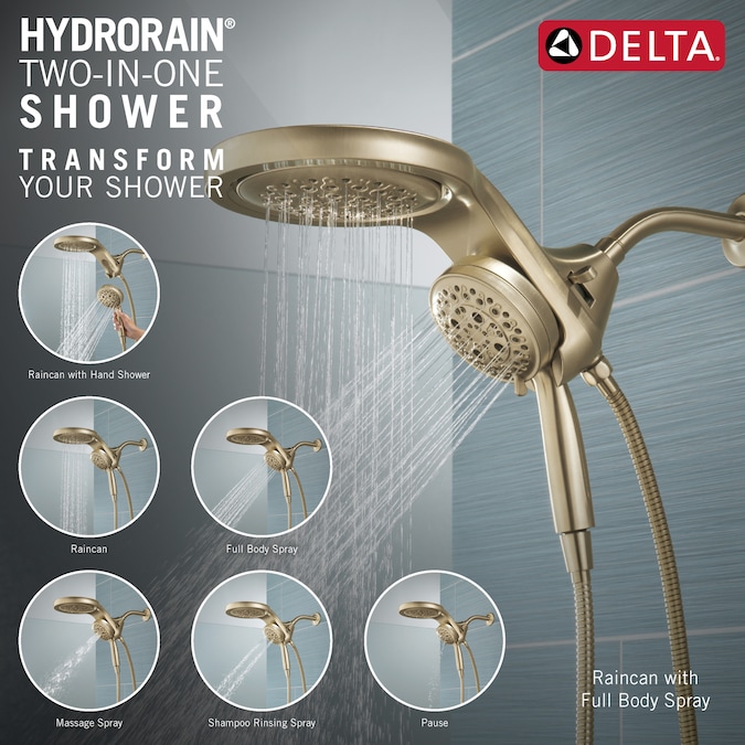 A Delta® HydroRain® H2Okinetic® Two-in-One Shower Head with hand shower completely transforms your shower with dual shower head functionality, featuring an integrated raincan and hand shower. The power of the raincan and hand shower together creates an immersive, spa-like showering experience that you can install in minutes to a standard shower arm, without altering the plumbing behind the wall. The integrated hand shower stays put every time you dock thanks to MagnaTite® Docking and provides maximum flexibility and control when you need it. You can install with confidence, knowing that Delta showers are backed by our Lifetime Limited Warranty.