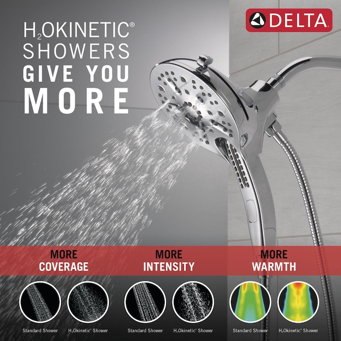 The Delta® In2ition® Two-in-One Shower features a detachable hand shower which can be used separately from or simultaneously with the shower head. This integrated dual-functionality gives you maximum flexibility without sacrificing warmth, as you can choose to have water streaming from the shower head only, the hand shower only or both the shower head and hand shower at once. Delta® MagnaTite® Docking uses a powerful integrated magnet to pull your In2ition® hand shower precisely into place and hold it there so it stays docked when not in use. Delta WaterSense labeled faucets, showers and toilets use at least 20% less water than the industry standard — helping you save water without compromising performance. You can install with confidence, knowing that Delta showers are backed by our Lifetime Limited Warranty.