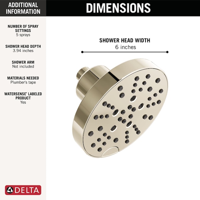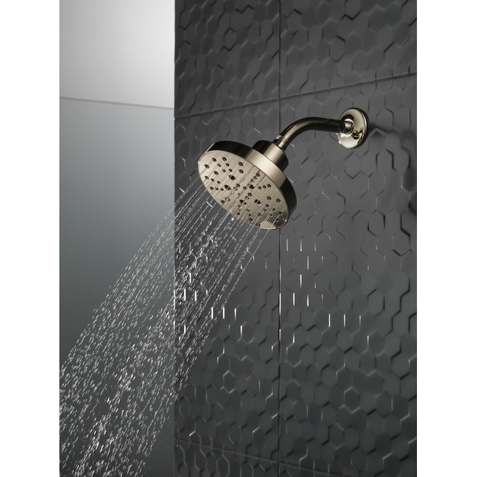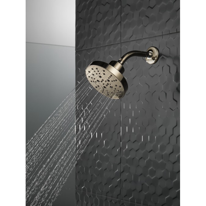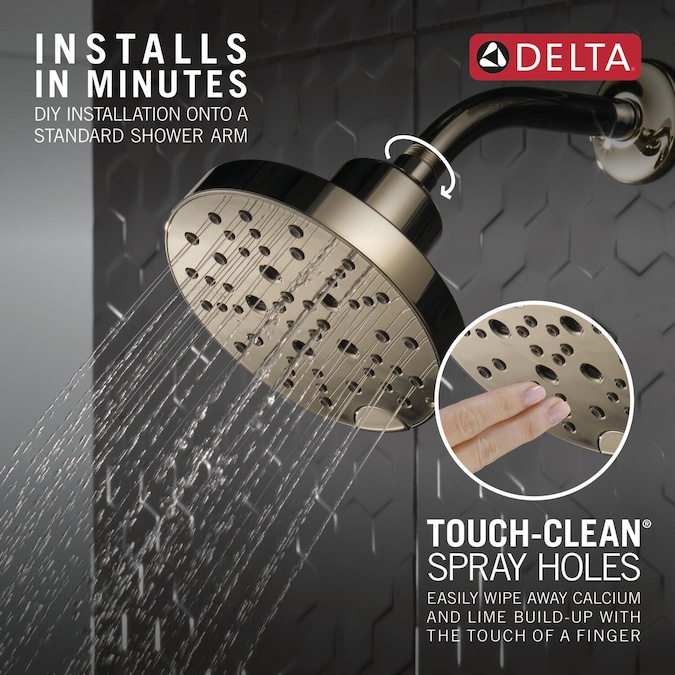 The confident slant of the Pivotal™ Bath Collection makes it a striking addition to a bathroom’s contemporary geometry for a look that makes a statement. Replacing your shower head is one of the quickest, simplest upgrades you can make to your shower. Our shower heads feature a wide range of styles and innovations, and install in less than 20 minutes – no special tools required. While other products may gather unsightly mineral build-up over time, Delta soft rubber Touch-Clean® spray holes allow any mineral residue to simply be wiped away for an instantly refreshed look – with no need for soaking or the aid of chemical cleaners. The pause setting gives you ample space for shaving, lathering and other shower tasks, then easily restarts the water with the temperature where you left off. This spray setting helps you conserve water, so you can worry less about depleting your supply of hot water – and you help the environment too. Delta WaterSense labeled faucets, showers and toilets use at least 20% less water than the industry standard—saving you money without compromising performance.