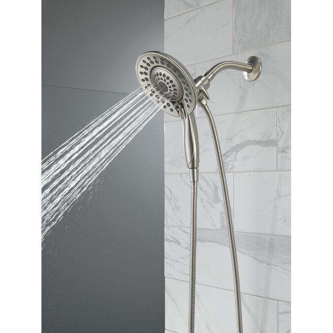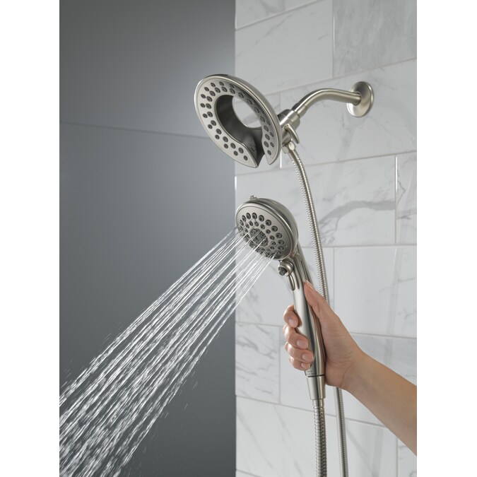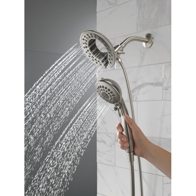 The Delta® In2ition® Two-in-One Shower features a detachable hand shower which can be used separately from or simultaneously with the shower head. This integrated dual-functionality gives you maximum flexibility without sacrificing warmth, as you can choose to have water streaming from the shower head only, the hand shower only or both the shower head and hand shower at once. While other products may gather unsightly mineral build-up over time, Delta soft rubber Touch-Clean® spray holes allow any mineral residue to simply be wiped away for an instantly refreshed look — with no need for soaking or the aid of chemical cleaners. Delta WaterSense labeled faucets, showers and toilets use at least 20% less water than the industry standard — helping you save water without compromising performance. You can install with confidence, knowing that Delta showers are backed by our Lifetime Limited Warranty.