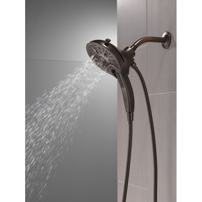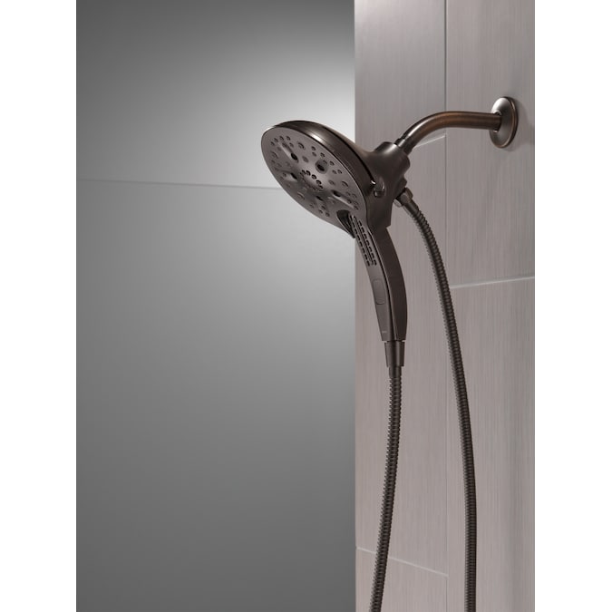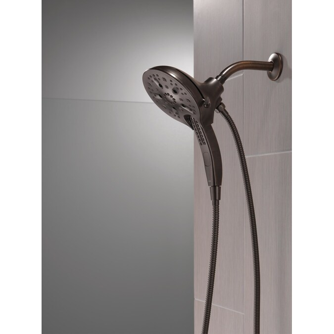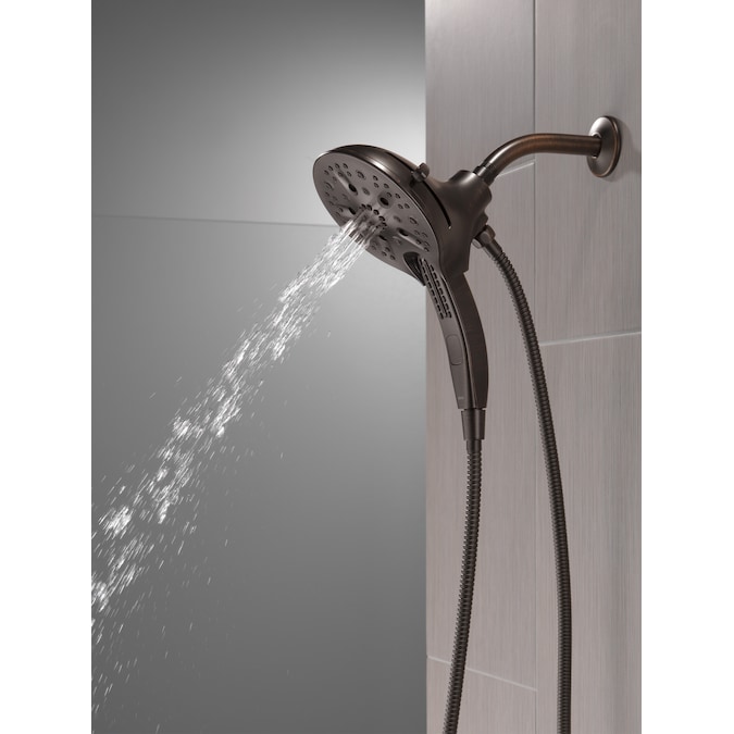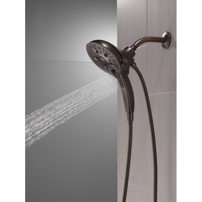 The Delta® In2ition® Two-in-One Shower features a detachable hand shower which can be used separately from or simultaneously with the shower head. This integrated dual-functionality gives you maximum flexibility without sacrificing warmth, as you can choose to have water streaming from the shower head only, the hand shower only or both the shower head and hand shower at once. Delta® H2Okinetic® PowerDrench® Showers look different because they are different. H2Okinetic® showers are powered by an innovative technology that sculpts the water into a unique wave pattern, giving you the feeling of more water without using more water and creating a shower with more warmth, coverage and intensity. So go ahead and indulge, because now you can enjoy the feeling of more water without using more water. Delta® MagnaTite® Docking uses a powerful integrated magnet to pull your faucet spray wand or In2ition® hand shower precisely into place and hold it there so it stays docked when not in use. While other products may gather unsightly mineral build-up over time, Delta soft rubber Touch-Clean® spray holes allow any mineral residue to simply be wiped away for an instantly refreshed look – with no need for soaking or the aid of chemical cleaners. The pause setting gives you ample space for shaving, lathering and other shower tasks, without worrying about overspray or water waste. This spray setting helps you conserve water, so you can worry less about depleting your supply of hot water – and you help the environment too. Delta WaterSense labeled faucets, showers and toilets use at least 20% less water than the industry standard—saving you money without compromising performance.