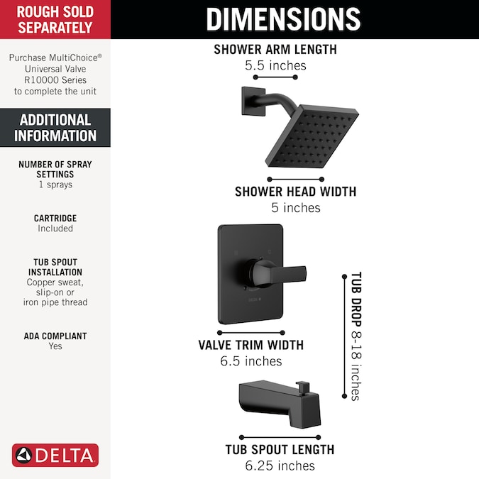 - Trim kit only, must order MultiChoice® Universal valve rough separately to complete the unit