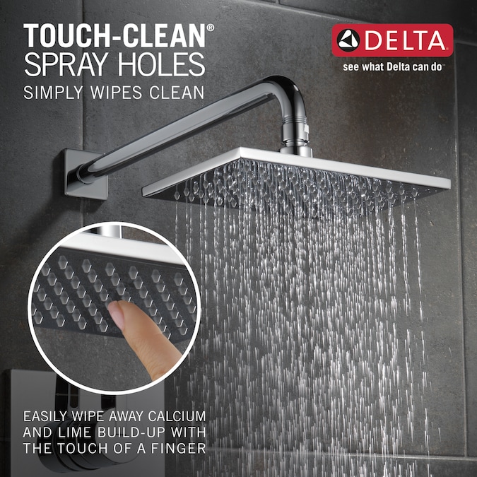 - Soft, rubber Touch-Clean spray holes allow you to easily wipe away calcium and lime build-up from the spray face of your shower head and hand shower with the touch of a finger