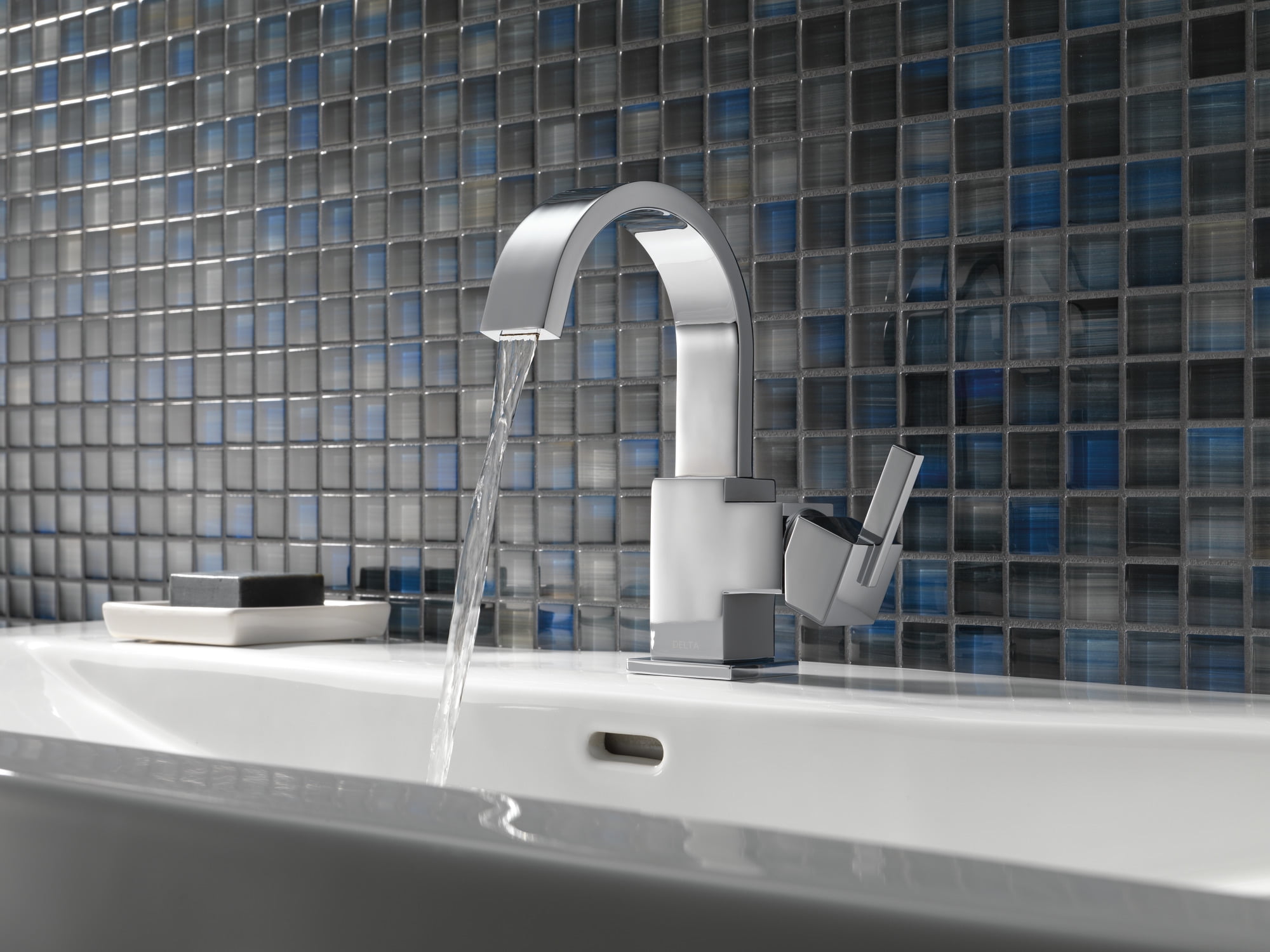 Inspired by the slim lines and graceful arc of a ribbon, the Vero bath collection offers a high-end, modern look. With a full suite of products, including accessories, Vero makes a fully-coordinated bath effortless. This Vero Single-Handle Lavatory Faucet in Chrome has a minimalist, urban feel which encompasses the entire design, including the elegant stream of water which flows with the ribbon-esque style. Not only is it a beautiful choice for your bath, it’s a smart choice for your home and the environment as well. Being WaterSense Certified means this faucet uses at least 20% less water than the industry standard, helping you save without sacrificing performance or style. Designed for style and durability, the Brilliance Stainless finish resists corrosion, tarnishing and discoloration, ensuring long-lasting beauty. Featuring the clean lines of a gracefully arcing ribbon, the Delta Vero single handle centerset lavatory faucet offers a high-end, modern look to the bath. The minimalist Vero provides single handle operation for ease of control, and it comes in a chrome finish (stainless steel also available). You’ll also enjoy excellent water efficiency without sacrificing comfort and convenience from this WaterSense-labeled faucet. It’s constructed with solid brass-fabricated end bodies. This single handle centerset lavatory faucet Vero can be used in one- or three-hole 4-inch installations, and it’s recommended that you provide a 2-1/2-inch clearance to the backsplash. Delta Faucet Company is committed to working with the EPA WaterSense program to encourage efficient use of water resources and actively protect the future of our nation’s water supply. This Vero faucet has a maximum 1.5 gpm (gallons per minute) flowrate at 60 PSI (pounds-per-square-inch) using 32 percent less water than comparable faucets.