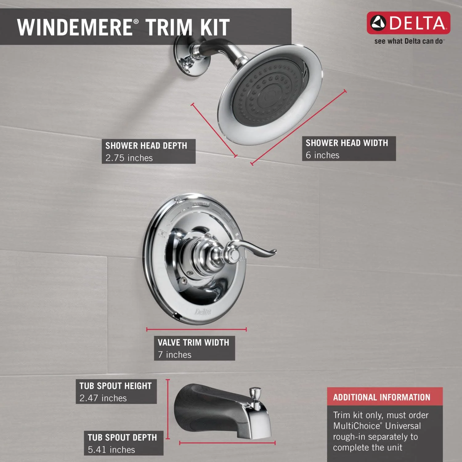 Trim kit only, must purchase R10000-UNBX rough-in kit separately The sculpted curves of the Windemere Bath Series bring a whimsical touch to the bath Durable, Oil-Rubbed Bronze finish is guaranteed not to tarnish or corrode Touch-clean Spray Holes make mineral build-up simple to remove Valve protects from rapid changes in cold or hot water pressure Full body spray, ideal for every shower need, from rinsing shampoo to relaxing tired muscles