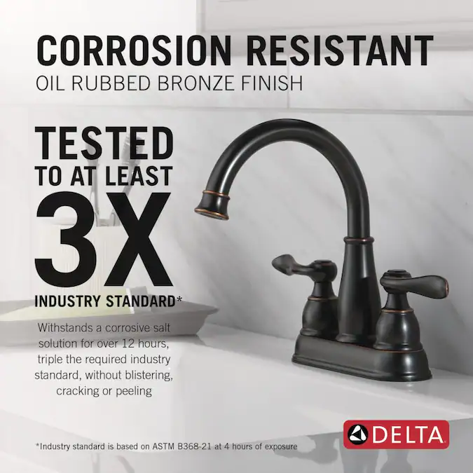 - CORROSION-RESISTANT FINISH: Oil Rubbed Bronze faucet finishes are salt fog tested, meaning they withstand a corrosive, chemical solution for over 12 hours, triple the required industry standard, without blistering, cracking or peeling
