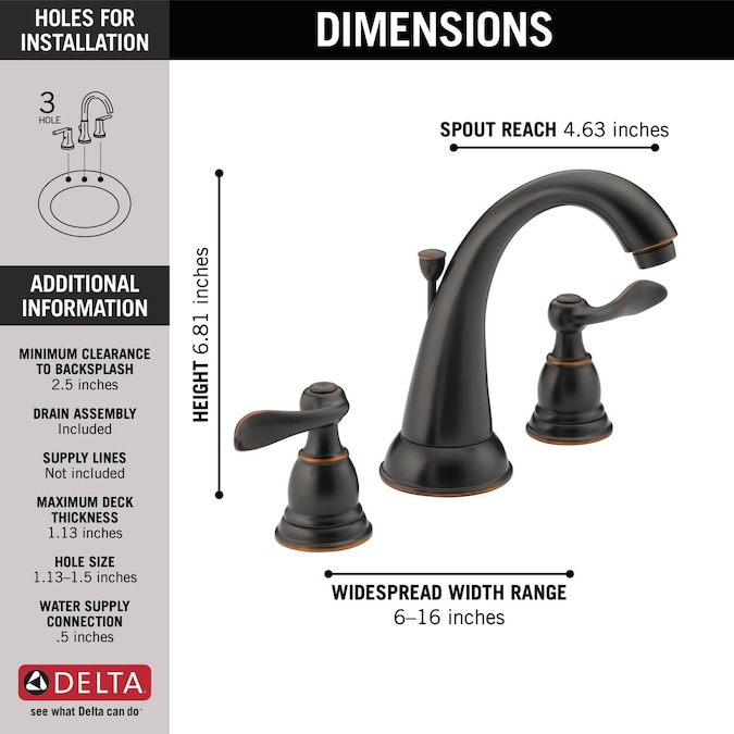 • Fits 3-hole 6-16-in installation