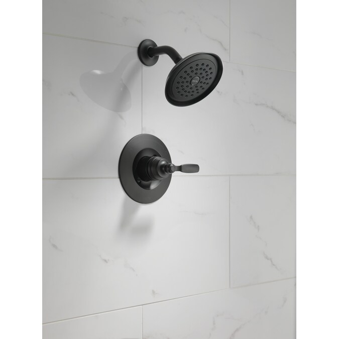 The Woodhurst® Bath Collection’s refined style lends an alluring charm to your bath, while the button-cap detailing confers a classic familiarity. While other products may gather unsightly mineral build up over time, Delta® soft rubber Touch-Clean® spray holes allow any mineral residue to simply be wiped away for an instantly refreshed look – with no need for soaking or the aid of chemical cleaners. Delta® showers with Monitor® pressure-balance valves are engineered to make sure you don’t experience a sudden and possibly unsafe change in water temperature as a result of running water elsewhere, such as using a dishwasher, flushing a toilet or running a washing machine. This Matte Black finish makes a statement in your space, creating a striking look that gets noticed. Delta WaterSense labeled faucets, showers and toilets use at least 20% less water than the industry standard — helping you save water without compromising performance. You can install with confidence, knowing that Delta products are backed by our Limited Lifetime Warranty.