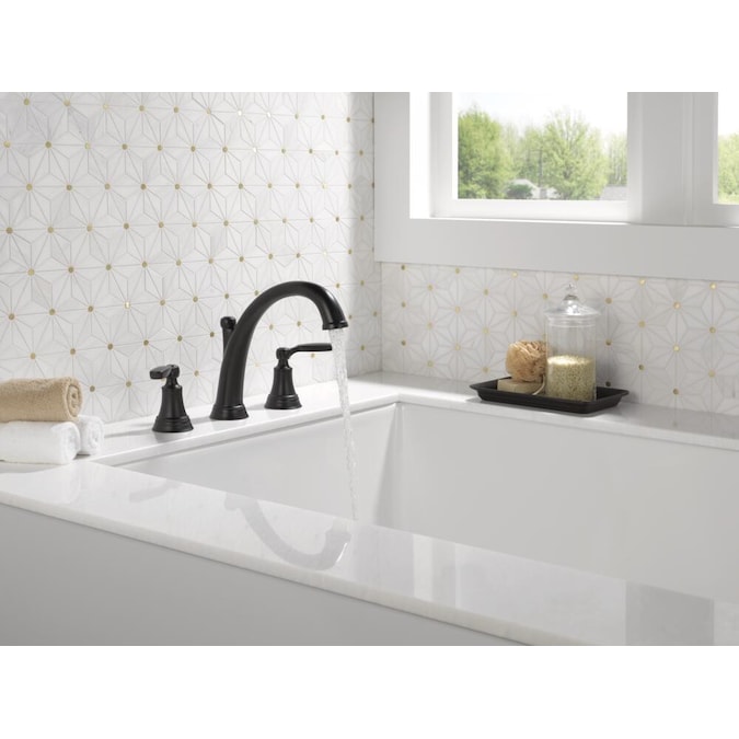 The Woodhurst® Bath Collection’s refined style lends an alluring charm to your bath, while the button-cap detailing confers a classic familiarity. Complete your bath with a beautifully designed Delta® Roman tub faucet, meticulously crafted to turn heads and enhance your experience. The Matte Black finish makes a statement in your space, creating a striking look that gets noticed. You can install with confidence, knowing that Delta faucets are backed by our Lifetime Limited Warranty.