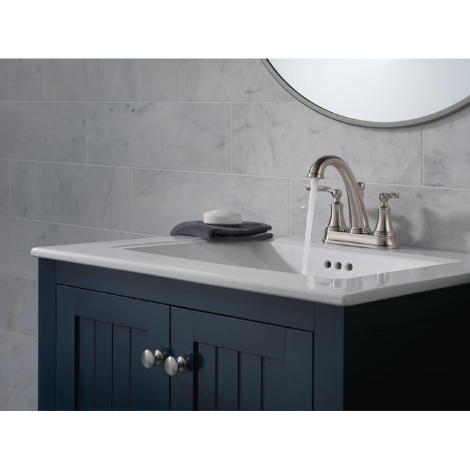 Delta Woodhurst Stainless 4-in centerset 2-Handle WaterSense Bathroom Sink Faucet with Drain