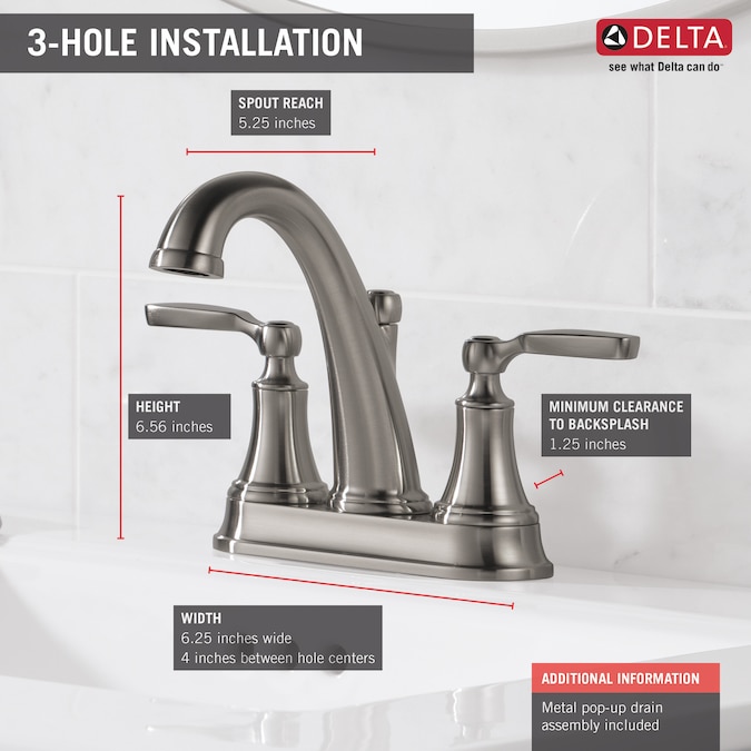 • LIFETIME LIMITED WARRANTY: You can install with confidence, knowing Delta bathroom faucets are backed by our Lifetime Limited Warranty and repair parts