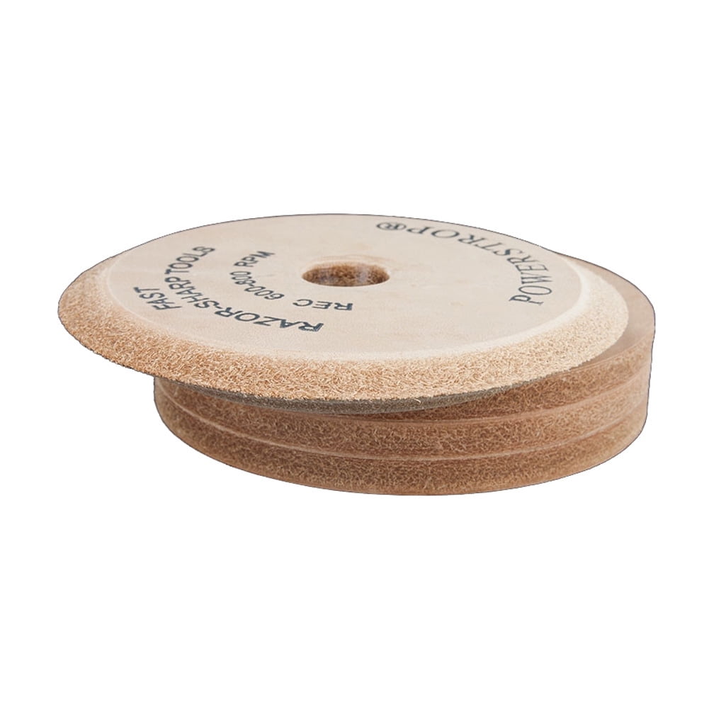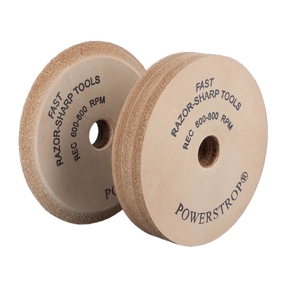 3 1/2″ diameter leather wheel. Fits into any standard power drill. Simply apply the included buffing compound to the leather wheel and let the drill do the work of bringing your edge up to a polished surface. Contains a V-shaped leather wheel for buffing inside V-tools and gouges along with the flat leather wheel. Removes the wire edge burr from stone sharpening – resulting in a keen razor-sharp edge like you’ve never had before! Rated for 600-800 RPM. Use for the inside radius of gouges, plane blades, wood chisels, draw knives and other tools. Click here to view video