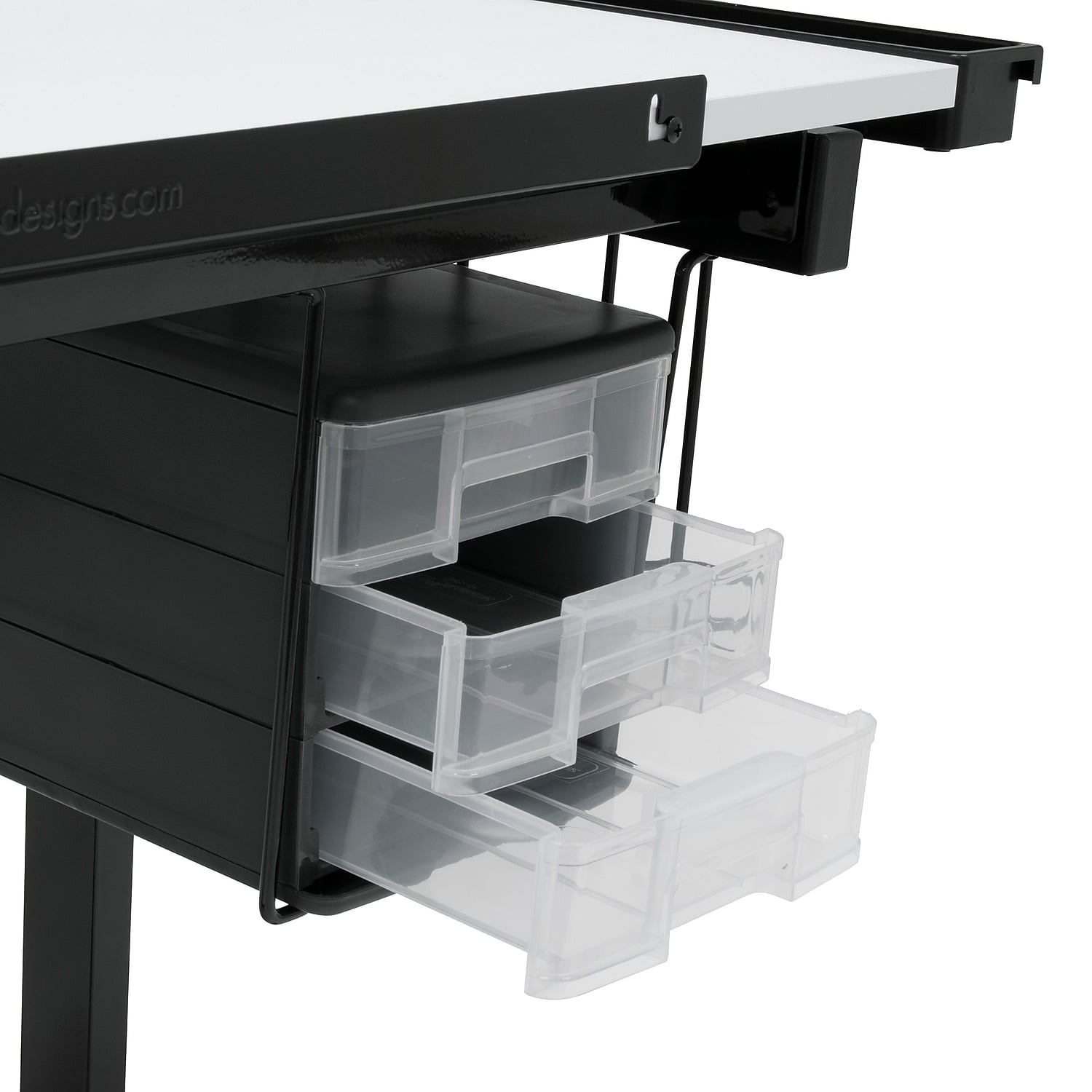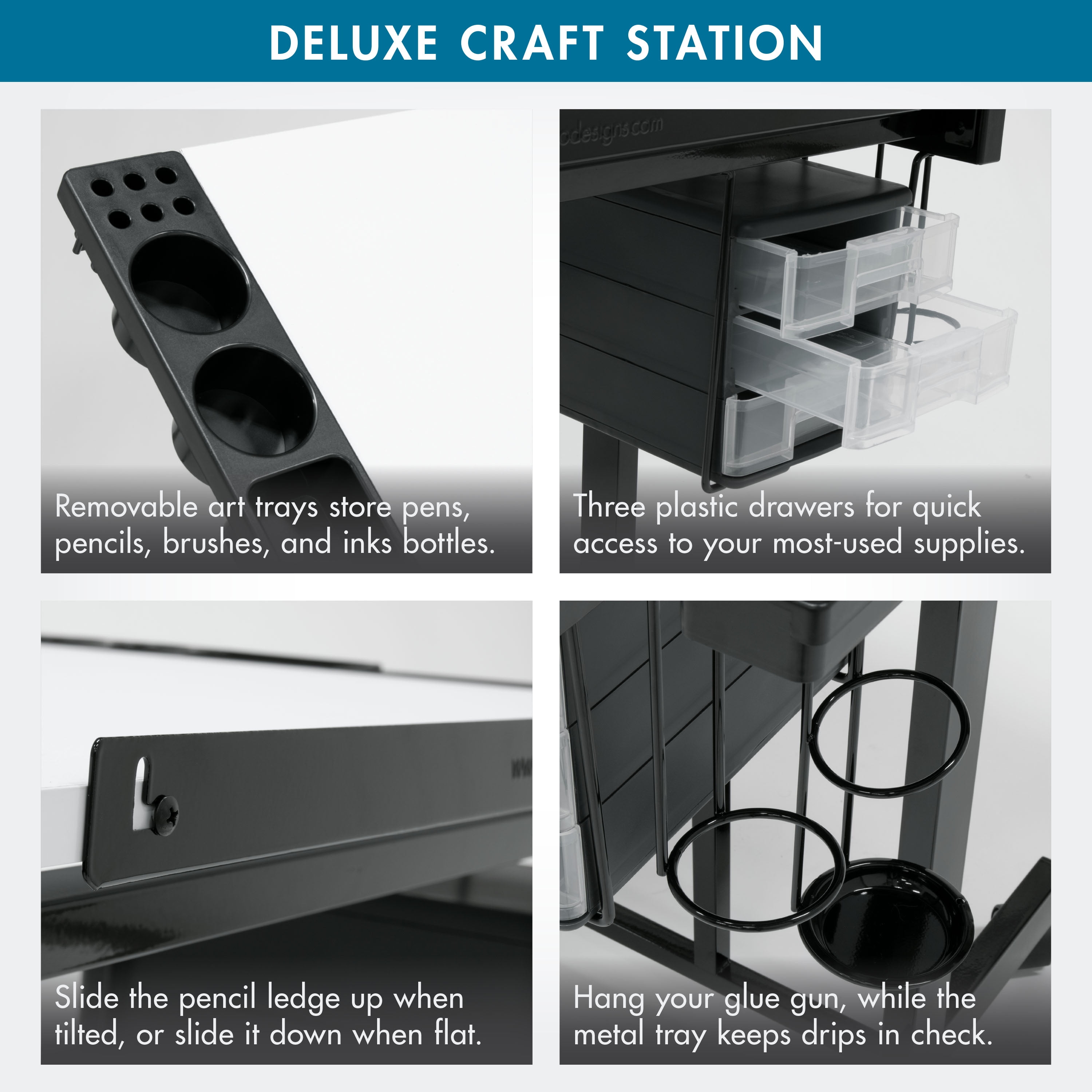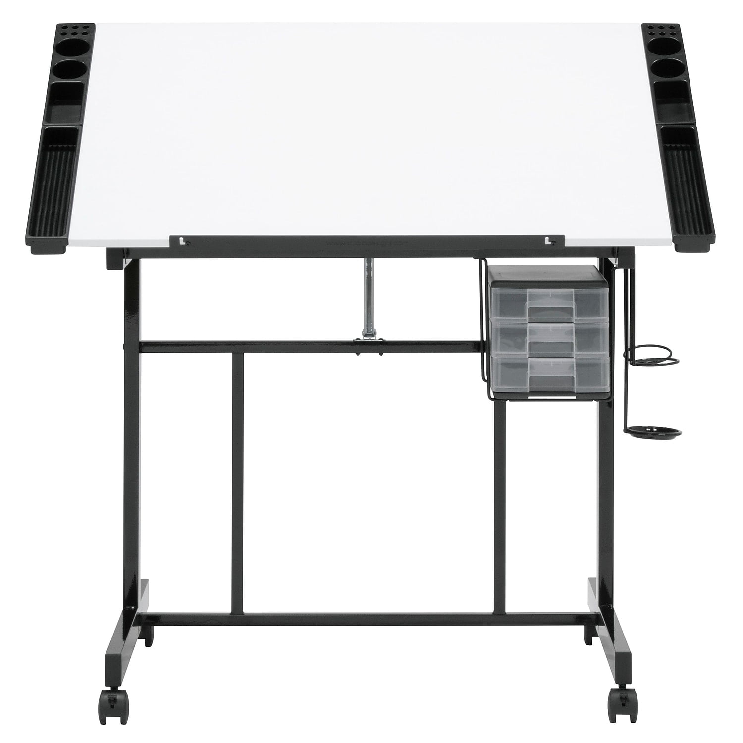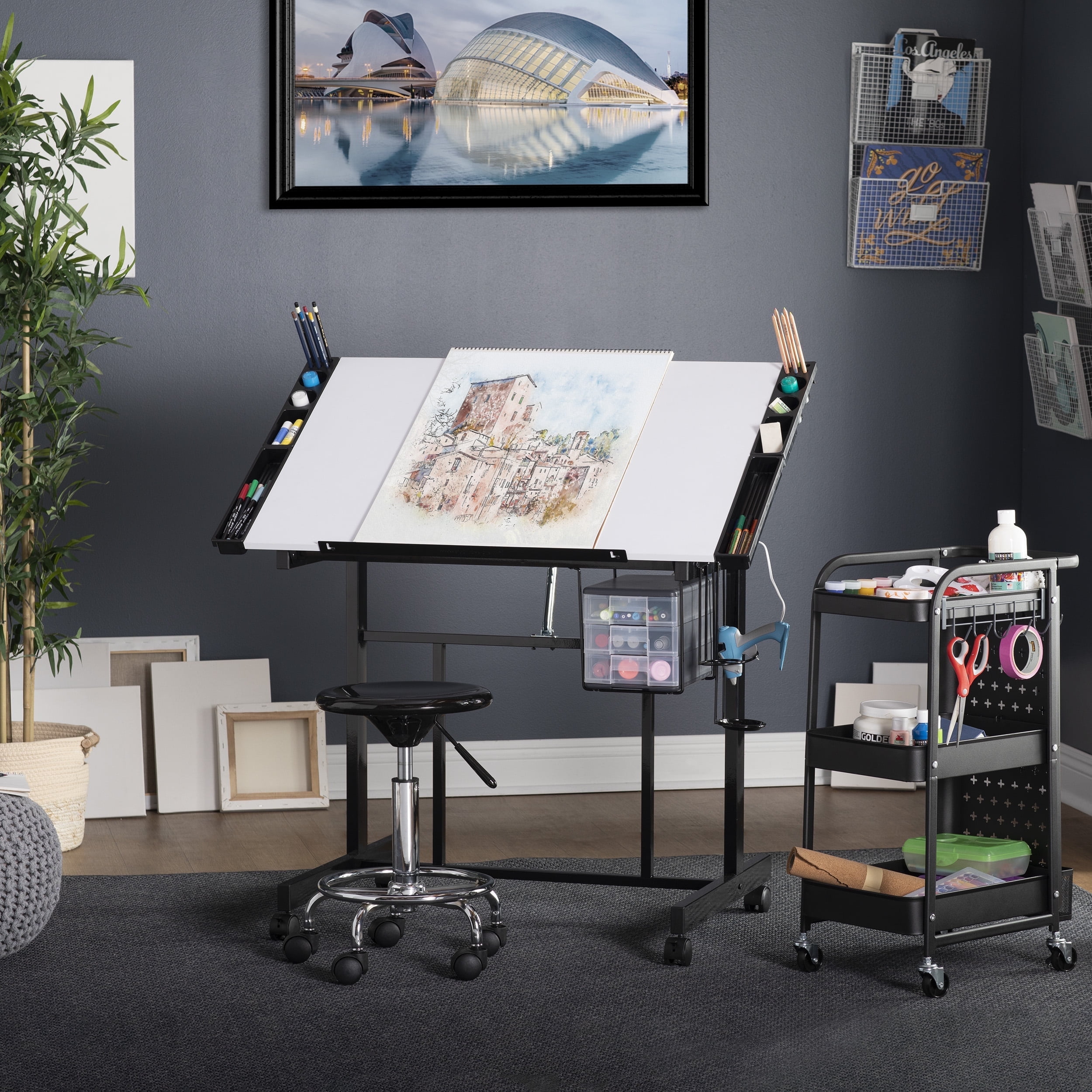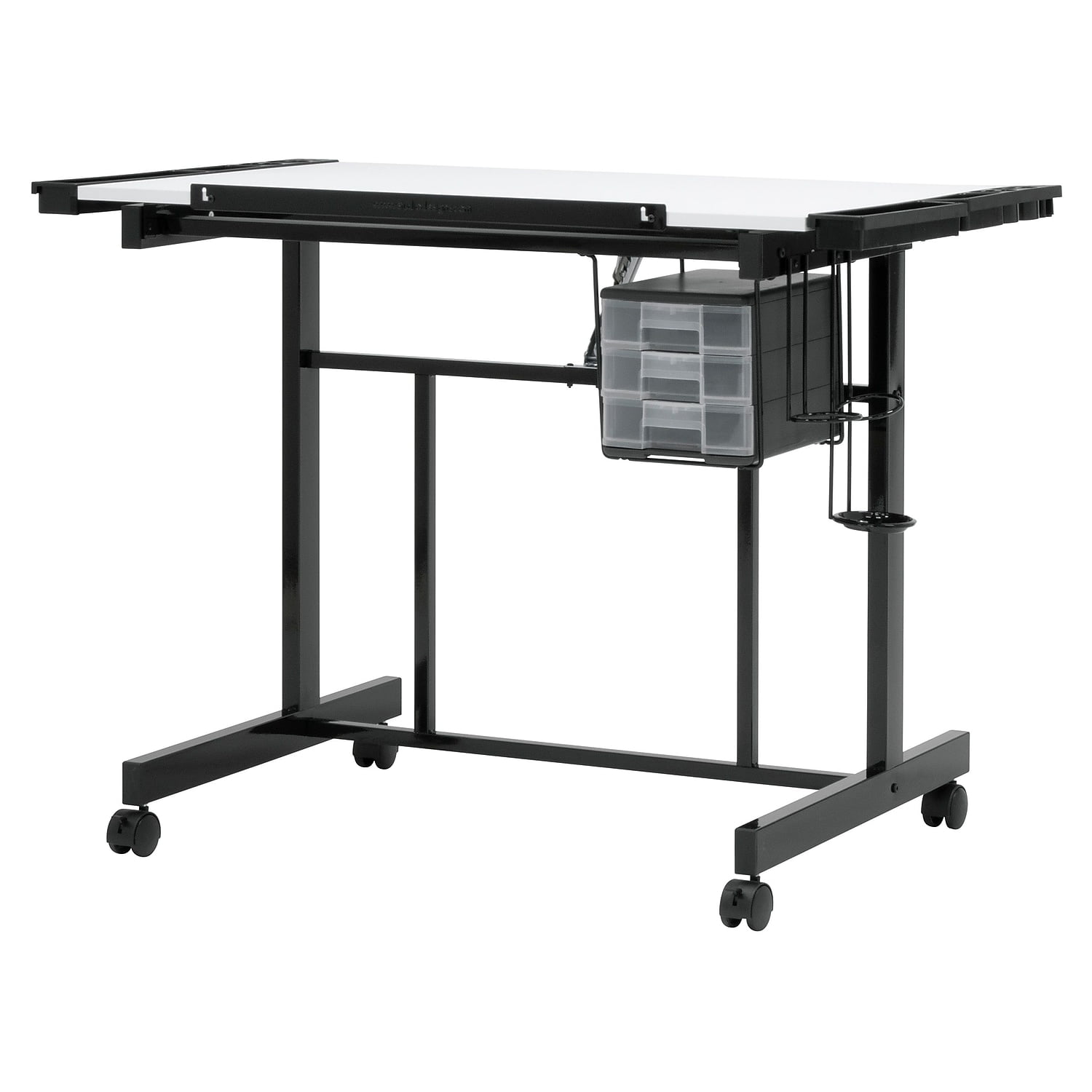 Deluxe Mobile Craft Station with Storage and Angle Adjustable Drawing Top Black/White