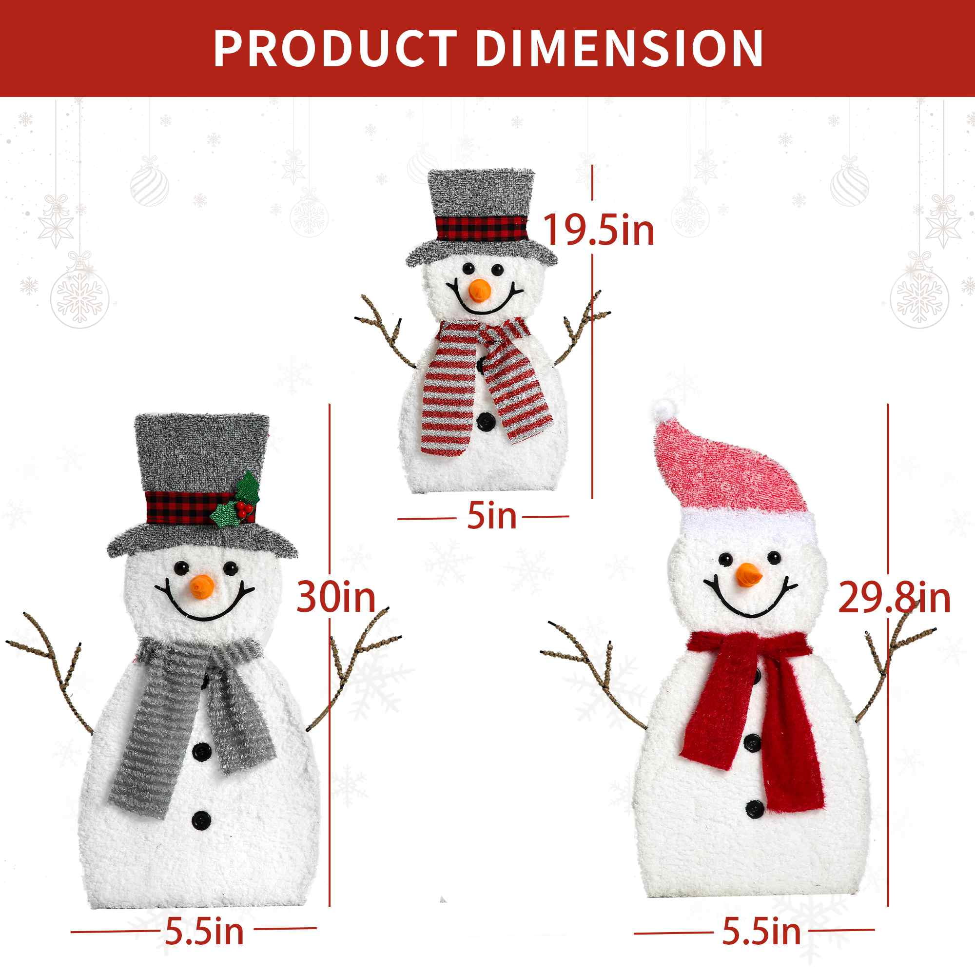 【CUTE DESIGN】:This festival 3-piece snowman decoration design is lovely, and it is an high-quality and cost-effective decoration. Welcome your lovely neighbors. They will certainly amaze the entire patio at night. 【CHARMING YARD DECORATIONS】: Don’t worry about keeping snowman in the cold; This outdoor decoration will be built for several weeks in winter. It can not only be used this winter, and it can also be used in the New Year. 【DURABLE MATERIAL】: Each luminous snowman Christmas plug is made of great material, which is lightweight, durable and waterproof. Even in windy and rainy days, the art works will be perfectly displayed in your yard for a long time. 【PLACEMENT AND ETMOSPHERE】: You could place this set on the side to be displayed, and finally select the correct position in garden or potted plants, and insert the Christmas Snowman Garden decoration. Keep your garden alive! 【WIDELY APPLICATIONS】: handmade accessories. It is very suitable for weddings, parties, gardens, landscapes, lawns, sidewalks, courtyards, courtyards, balconies, spring, winter, Christmas,etc.